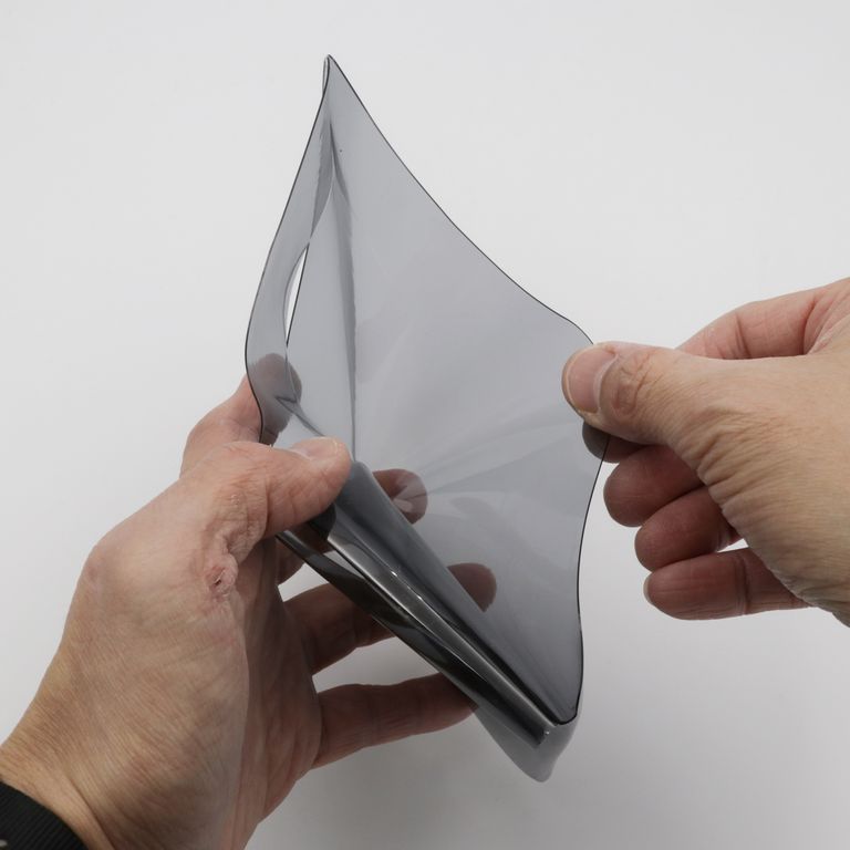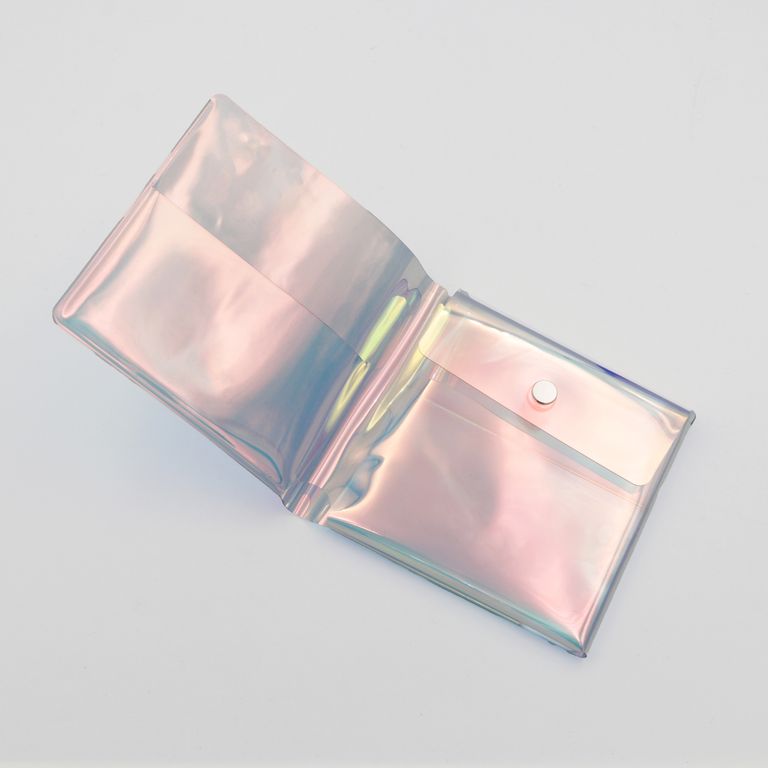 100度を超える温度変化でも容易に変質しない扱いやすいPVCをステッチを使わず溶着で仕上げた折財布。