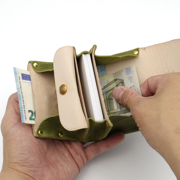 再入荷 YUICHI TACHIYAMA 「アコーディオンウォレットmini」財布 ウーノ・グリーン ¥14,300 税込 130 ポイント還元 発送目安日:1–2営業日 この商品は 送料無料 でお届けします 注文 サイズ(採寸)情報 質問する お気に入り お電話でもご注文いただけます!お電話の際は 商品番号:12926 をお知らせください。 電話をかける 076-245-0067 縦 横 厚み 重量 85 115 40 78 単位:mm(重量:グラム) ※サイズ・重量は実測にて計測していますが、多少の誤差がある場合があります。 商品説明 見た目と裏腹の収納力!アコーディオンウォレットmini版。『YUICHI TACHIYAM』の「アコーディオンウォレットmini」。蛇腹状の構造を活かした使いやすさと、キュートなルックスで人気の「アコーディオンウォレット」の「ミニ」サイズバージョン。小銭25枚、カードは厚みのあるプラスチックカードで約15枚、お札15枚と通常のアコーディオンウォレットのほぼ1/2の収納力となりますがサイズダウンして、手に馴染みやすい大きさになったので、カードなどがそれほど多い方でなければ十分対応可能です。手前から小銭、カード、お札を収納する部屋に分かれており小銭入れの手前のポケットとお札収納が繋がっているのでお札側から紙幣を折らずにスルスルと入れて小銭入れ側から取り出すことも出来ます。大きいコインポケット。コインポケットにはホック留めのフラップを備えているので、カードやお札だけ出したいときに小銭が飛び出すこともありません。さかさまにしても落ちないカード。カード収納部はカードの横幅に比べわざと少し狭めに作られています。少し拡げるようにしてカードを差し込むことでテンションが掛かり、お財布をさかさまにしてもカードが滑落しにくい仕様です。独立したポケットはカードには少し小さいので鍵などちょっとしたものを入れてください。折らずにお札が入ります。お札は、カード収納部の下をくぐりぬけるように差し込みます。使い出しの時はコインポケットのホックを開けてアールを少なくすると滑るように入っていきます。しばらく使用して馴染むとコインポケットのホックを閉じたままでもスムーズに出し入れが出来るようになります。YUICHI TACHIYAMA オリジナルレザー「ウーノ」ブランド初のオリジナルレザー。タンニンなめしに、ロウの原料でもあるパラフィン加工を施し、薬品で表面のシボ感を強調するシュリンク加工で仕上げています。ムラ感と型押しのシボの整いが美しく、長く使うことで革好きも納得のタンニンなめし特有の経年変化が楽しめます。 ギフトラッピングについて 大切な方への贈り物、気持ちを込めてラッピングいたします。大事な贈り物。ギフトボックスやラッピングペーパー、ヴィンテージの切手やマッチラベルを使って可愛くお包みします。当店でお取り扱いしております商品には商品ページで特に説明しているもの以外には専用の箱類は付属しません。 ギフトラッピングご希望のお客様にはお店でご用意できる資材を駆使してお相手の方に喜んでいただけますよう、心を込めてお包みさせていただきます。尚、ラッピングの体裁については当店にお任せください。ご用意は一般的なギフト用ラッピングになり、「のし」などの特別なご要望については対応しておりませんのでご了承ください。【ラッピングサービス有料化のお知らせ】これまで無料でご提供していたラッピングサービスですが、誠に勝手ながら有料(220円)とさせていただくことになりました。お客様にはご負担をおかけいたしますが、引き続き心を込めて対応いたしますので、ご理解のほどよろしくお願い申し上げます。 詳細情報 カラー グリーン 素材 日本製YUICHI TACHIYAMAオリジナル牛革(タンニンなめしパラフィン&シュリンク加工) ブランド YUICHI TACHIYAMA 品番 acwm-ugr カテゴリ 財布・小物 > 財布 > コンパクト財布 性別 ユニセックス 返品 返品可能条件はこちら ラッピング 可能 発送目安日 1–2営業日 配送方法 ヤマト運輸(送料について) お支払い方法 本商品でご利用可能な決済方法は下記となります。各お支払い方法についての詳細はショッピングガイドをご覧ください クレジットカード払い セキュリティコードとはクレジットカード裏面のサイン欄上部に記載されている数字の一番右の3桁の数字です。アメリカン・エキスプレス・カード提携のクレジットカードの場合、セキュリティコードはクレジットカード表面に記載されている4桁の数字となります。 あと払い (ペイディ) 事前登録不要、クレジットカード登録不要。 メールアドレスと携帯電話番号だけで、今すぐ購入可能。 お支払いは翌月27日までに、コンビニ払い・銀行振込・口座振替で。 1か月に何度購入しても、お支払いは翌月まとめて1回でOK。 さらに、ペイディアプリから本人確認をすると、分割手数料無料*の3回あと払い**、ご利用可能額の確認、使い過ぎを防止する予算設定など、便利な機能がご利用いただけます。 *口座振替・銀行振込のみ無料 **1回のご