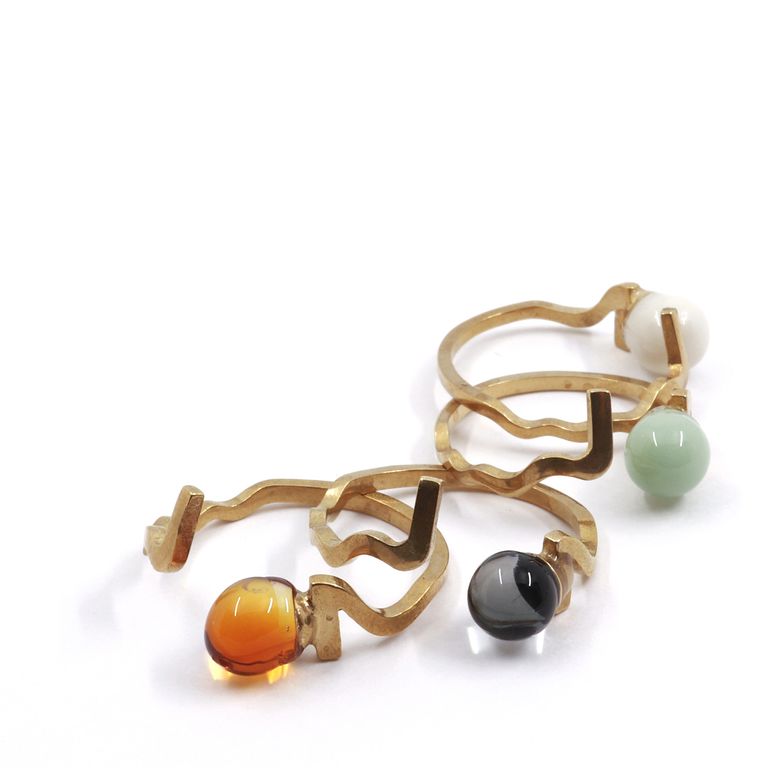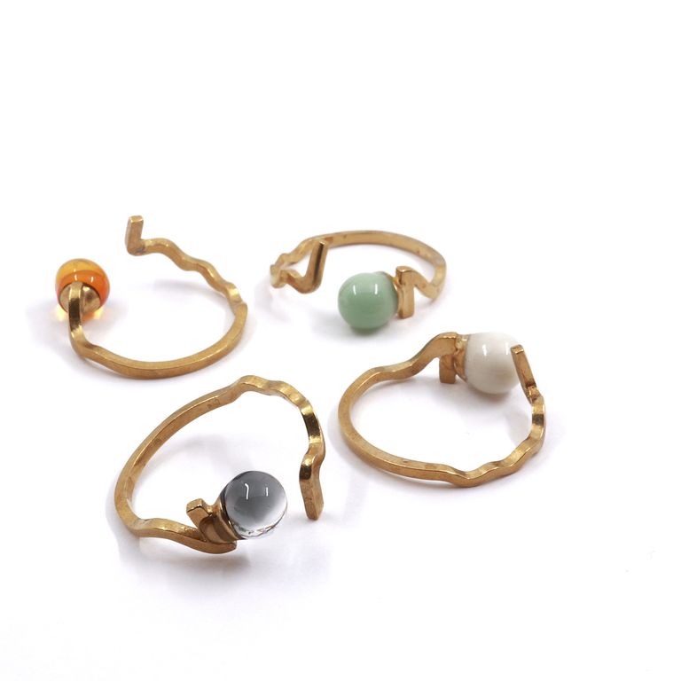 「Manhattan」「Mojito」「Black velvet」「Piña Colada」。カクテルの名前が付けられた4色展開のリング。