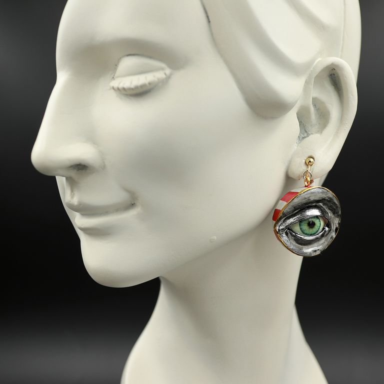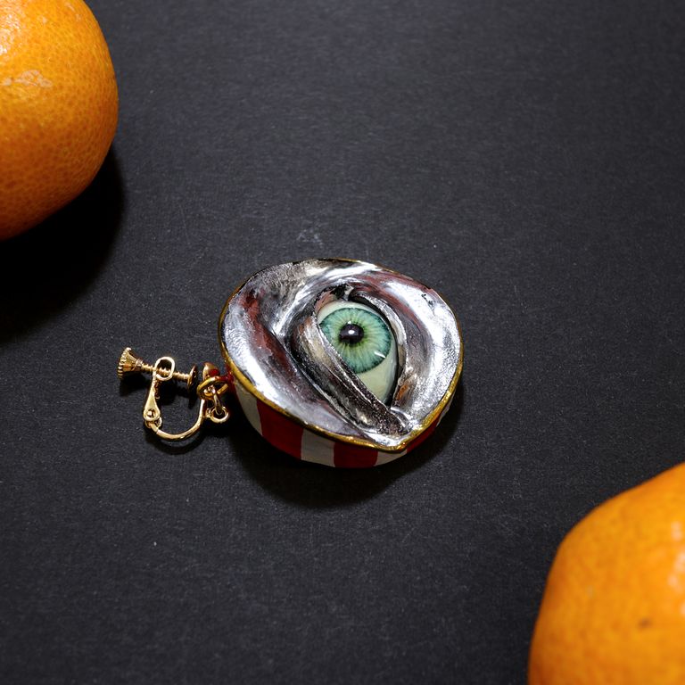 「AZUSA IIO(アズサイイオ)」のライフワーク人体シリーズ。目をモチーフにした「memory(メモリー)」シリーズの片耳イヤリング。