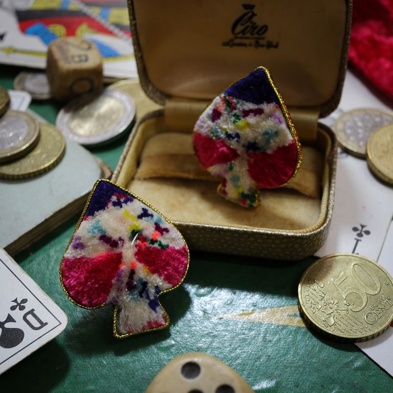 在庫なし クリックポストでの配送可能 sachikoism 「SUIT」イヤリング【CASINO de sachikosim】 ¥6,050 税込 55 ポイント還元 11,000円(税込)以上お買い上げで 送料無料 注文 サイズ(採寸)情報 質問する お気に入り お電話でもご注文いただけます!お電話の際は 商品番号:14242 をお知らせください。 電話をかける 076-245-0067 たて よこ 38 31 単位:mm ※サイズは実測にて計測していますが、多少の誤差がある場合があります。 商品説明 『♧♡CASINO♤♢ de sachikoism』sachikoismの新作コレクション『CASINO de sachikoism』。お馴染み、corneからのお題をsachikosimがその自由な感性で形にする特別なコレクション。ワクワクする華やかなカジノの華と、陰となるミステリアスさの陰陽を交えて表現したアクセサリー。「SUIT(スート)」sachikoismの代表的アイテムのシリーズ「TRIBO」をトランプのマークで制作しました。「TRIBO」の周りをパイピングした新しい技法を使うことで今までの抽象的なデザインを糸の繊維が作る柔らかい印象だけでなく、カチッとしたフォーマルな雰囲気をプラス。ドレスアップして楽しむ「CASINO」の世界観にぴったりのアイテムになりました。sachikoism「TRIBO(トリボ)」。エスペラント語で「民族」を表すシリーズ名を持つアクセサリー。名称から連想できるオリエンタルな印象もありつつ、抽象画のように見る人に感想がゆだねられたような「ゆらぎ」が魅力でもあります。糸を生地に貼り付け、ピンセットや針で流れを作り、撚った糸をほぐして繊維の状態にした後に表面をカットして仕上げています。絨毯の様な柔らかい手触りで、糸ならではの軽さは着用もしやすい優しいアイテム。染色した糸で表現した色の流れは滲んだ絵具の様に繊細です。【about CASINO de sachikoism】光輝く煌びやかなカジノルームで、無限に続く舞台が繰り広げられる。振り撒かれる金銀の煌めきが、夜空を彩り、星々と競い輝く。ある者は計算高く、ある者は無謀に。ベットする者たちの息遣いが交錯し、情熱のるつぼとなり、乗るかそるかの一攫千金の戦いへと誘う。カードが舞い踊り、ルーレットが歓喜に満ちた旋律を奏でる。一瞬一瞬が永遠かのような刹那の中、勝利の花が咲く先に潜む夢の果てを目指して人々は賭け続ける。カジノの煌めきは、不変の誘惑を宿し、夜の中で輝く星のように、永遠に輝き続ける。前回のコレクション【CIRQUE de sachikoism】の続編とも言える今回のコレクション。エンターテイメントでありながら、どこか陰のあるミステリアスさを踏まえつつ、賑やかでワクワクする派手な楽しさ、そして「sachikoism」自身がカジノに感じる「カジノ=伝統(vintage)」のイメージを交えて表現しています。 ------------------イヤリングの痛くなりにくい付け方のコツなどを知りたい方はこちら ------------------コルネには個性的でサイズも大きめなイヤリングが目白押し!そんなコルネのラインナップの中で気になるけど自分に似合うのか不安...といったお声をよくおききします。そんなあなたに読んでもらいたい、あなたに似合う大ぶりイヤリングの選び方はこちらからご覧ください! クリックポスト便での発送について 送料が安くお得になります!ご注文商品すべてを梱包して厚さ3cmに収まる場合、クリックポスト便(送料297円)にて出荷いたします。クリックポスト発送の際はご注文後に送料の変更を行い、商品発送時に合計金額をお知らせします。※日付指定・時間指定がある場合はクリックポストでは配送できません。※お支払方法が「代金引換」の際はご利用いただけません。※送料無料のお客様もクリックポストでお届けさせていただく場合もございます。詳しくはこちらをご覧ください。 ギフトラッピングについて 大切な方への贈り物、気持ちを込めてラッピングいたします。大事な贈り物。ギフトボックスやラッピングペーパー、ヴィンテージの切手やマッチラベルを使って可愛くお包みします。当店でお取り扱いしております商品には商品ページで特に説明しているもの以外には専用の箱類は付属しません。 ギフトラッピングご希望のお客様にはお店でご用意できる資材を駆使してお相手の方に喜んでいただけますよう、心を込めてお包みさせていただきます。尚、ラッピングの体裁については当店にお任せください。ご用意は一般的なギフト用ラッピングになり、「のし」などの特別なご要望については対応しておりませんのでご了承ください。【ラッピングサービス有料化のお知らせ】これまで無料でご提供していたラッピングサービスですが、誠に勝手ながら有料(220円)とさせていただくことになりました。お客様にはご負担をおかけいたしますが、引き続き心を込めて対応いたしますので、ご理解のほどよろしくお願い申し上げます。 詳細情報 カラー マルチ 素材 糸他 ブランド sachikoism 品番 SC-1-2-06 カテゴリ アクセサリー > イヤリング > NEWイヤリング 性別 女性 返品 不可 ラッピング 可能 配送方法 ヤマト運輸(送料について) お支払い方法 本