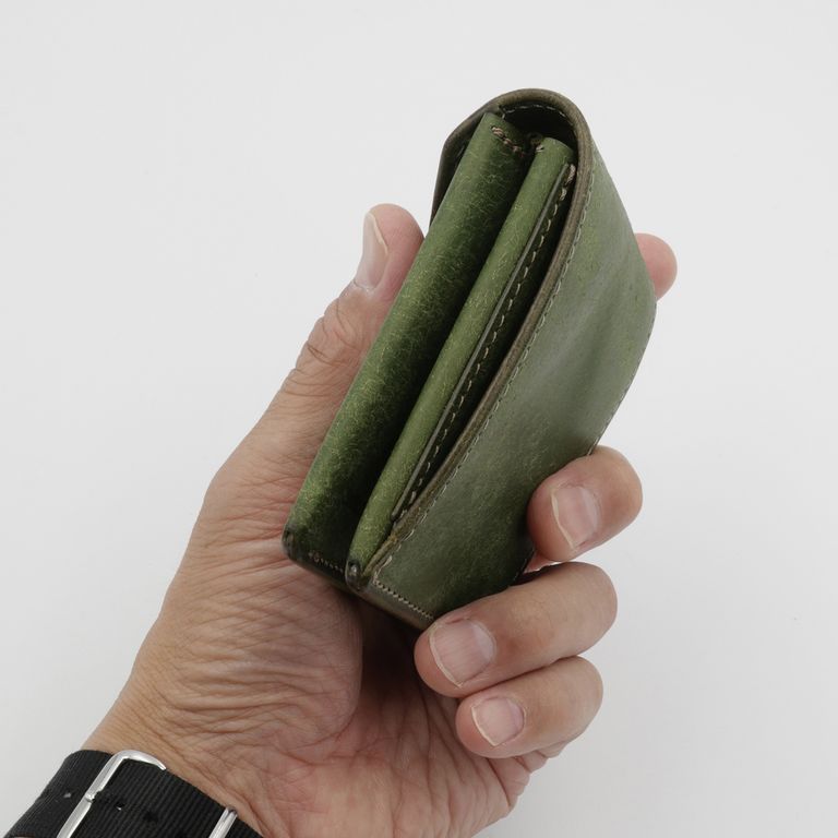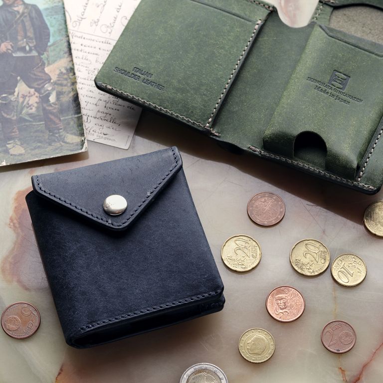 新入荷 cramp 【Cramp】ギャルソンスリムウォレット プエブロ ネイビー ¥22,000 税込 200 ポイント還元 発送目安日:1–2営業日 この商品は 送料無料 でお届けします 注文 サイズ(採寸)情報 質問する お気に入り お電話でもご注文いただけます!お電話の際は 商品番号:15846 をお知らせください。 電話をかける 076-245-0067 縦 横 厚み 重量 98 88 25 80 単位:mm(重量:グラム) 商品説明 最高峰のエイジング「プエブロ」。池之端銀革店「Cramp」の人気モデル「ギャルソンスリムウォレット」に、経年変化が魅力のイタリア革「Pueblo(プエブロ)」バージョンが登場。「Cramp」ロゴ入りオリジナルホックは上品なシルバー仕上げに、内装のブランドネームは素押しで統一し、すっきりとシャープな印象に。革本来の表情と質感を存分に堪能できる、洗練されたルックスに仕上げています。隅々まで考え抜かれた『小さくて使いやすい』財布。小銭が広く開くギャルソンコインポケットを備えたコンパクト財布。手のひらにすっぽり収まるコンパクトさと収納力を兼ね備えたアイテムです。細かく気配りされたデザインは使うことでその価値をより感じていただけます。フラップを開けると、小銭、お札、カードに一度でアクセス可能で、お札を出しながら小銭量の確認が同時に出来るので、無駄に小銭を溜め込まずスマートに使えます。小銭部は開口部がかなり大きく視認性も高くなっています。お札/カード収納部を広げずに小銭だけの出し入れも可能です。お札は1万円札を入れて10mmほどあまるほぼジャストサイズですが、端部分にステッチを入れないデザインにすることで、コーナーが丸みを帯び、端に引っ掛からずスムーズに出し入れ出来ます。カードは向かって右側のメインに厚みのあるクレジットカードタイプを6枚、左側に3枚程度収納できます。薄手のポイントカードなどを合わせるとさらに多くの枚数を収納可能。左右のポケットはそれぞれ、収納したカードが痛まないようにカードのヘリが革部分からはみ出さないように工夫されています。メインのポケットは下部に窓が設けられ、カードを下から押し上げて、取り出すことが出来ます。左側ポケットの背面にもスリットを設け、カードはギリギリのサイズなので、こちらはレシートや駐車券などを入れる収納におススメです。革好きも納得の職人技が光る逸品。元々ベルト製造を専門としていたメーカーらしく、コバ(革のヘリ)を本磨き※で美しく仕上げています。コンパクトなサイズながら、日本の職人技で細部まで丁寧に仕立てられています。プエブロ:イタリア革「Pueblo(プエブロ)」は、トスカーナ地方の名門タンナー「Badalassi Carlo S.p.A.(バダラッシ・カルロ社)」によるフルベジタブルタンニンレザーです。表面を職人が手作業でバフィング(擦り加工)することで、和紙のような独特のマットでザラッとした質感に仕上げています。使い込むほどに艶が増し、色味が深まり、まるで別の革のように変化していくダイナミックなエイジングを楽しめます。本磨き:革の断面をやすりなどで丁寧に整えた後、布海苔や磨き剤を塗り込み、柔らかい布などで何度も擦り付けて圧力をかけることで、文字通り「磨き上げる」作業のことです。手間暇はかかりますが、仕上がりが美しく、革の断面が割れにくいため、製品を長く美しい状態で保つことができます。※基本的に右手で小銭、お札、カードを取り出しやすい設計となっているので、左利きの方で利き手で小銭などを取られる際は使用時に少し慣れが必要となりますのでご注意ください。※ギャルソンウォレットヨーロッパのカフェやレストランで働くギャルソンと呼ばれるウェイターが愛用するお財布のデザイン。テーブルチェック(会計)がしやすいように、小銭部が大きく開くデザインのものが多くなります。 ギフトラッピングについて 大切な方への贈り物、気持ちを込めてラッピングいたします。大事な贈り物。ギフトボックスやラッピングペーパー、ヴィンテージの切手やマッチラベルを使って可愛くお包みします。当店でお取り扱いしております商品には商品ページで特に説明しているもの以外には専用の箱類は付属しません。 ギフトラッピングご希望のお客様にはお店でご用意できる資材を駆使してお相手の方に喜んでいただけますよう、心を込めてお包みさせていただきます。尚、ラッピングの体裁については当店にお任せください。ご用意は一般的なギフト用ラッピングになり、「のし」などの特別なご要望については対応しておりませんのでご了承ください。【ラッピングサービス有料化のお知らせ】これまで無料でご提供していたラッピングサービスですが、誠に勝手ながら有料(220円)とさせていただくことになりました。お客様にはご負担をおかけいたしますが、引き続き心を込めて対応いたしますので、ご理解のほどよろしくお願い申し上げます。 詳細情報 カラー ネイビー 素材 イタリア製牛革 ブランド cramp 品番 Cr-175PB-N