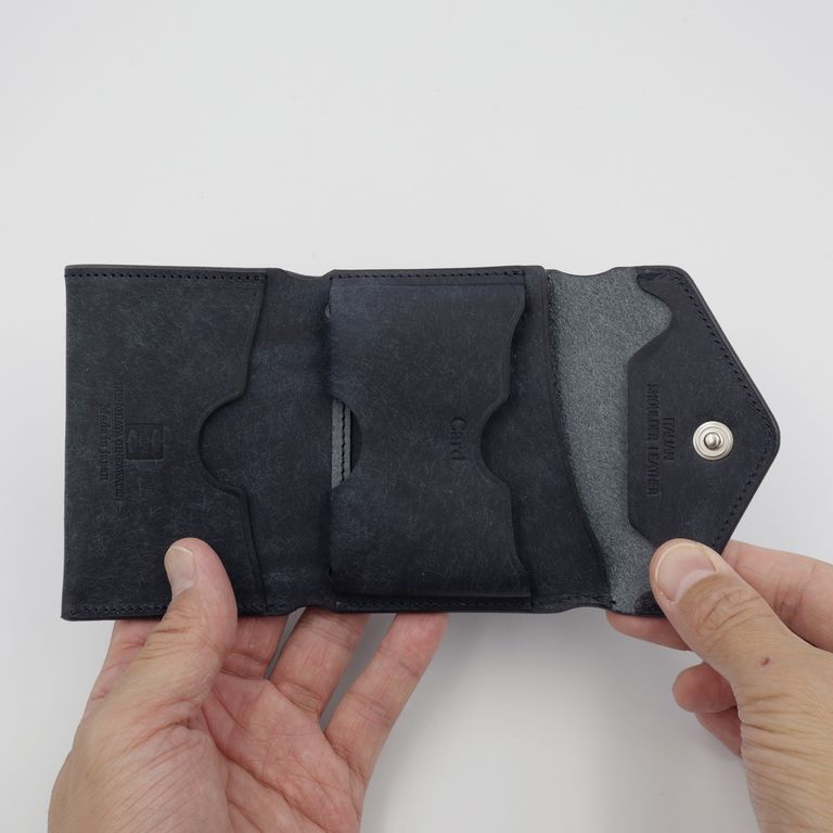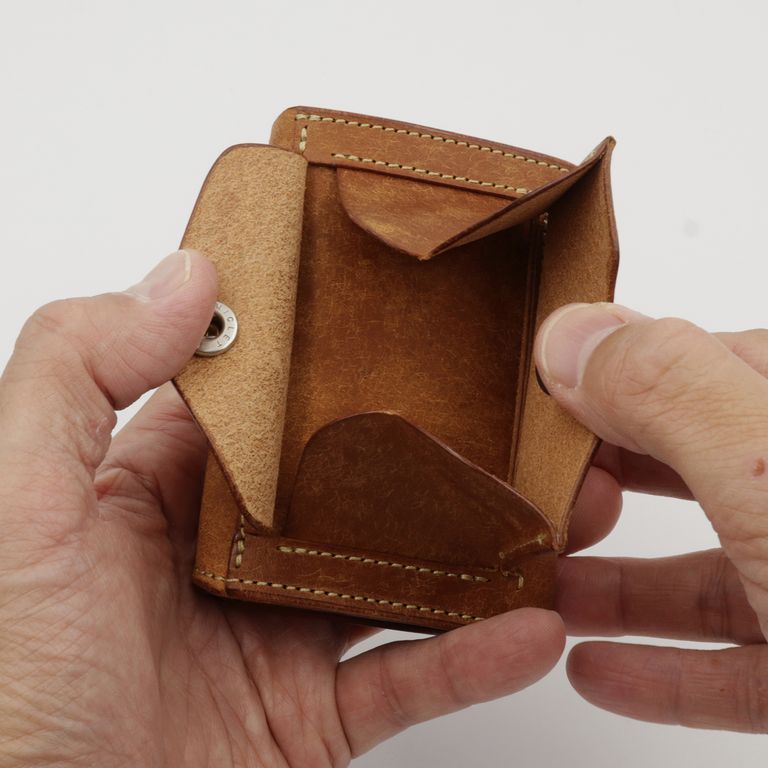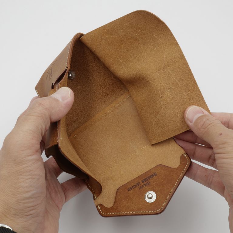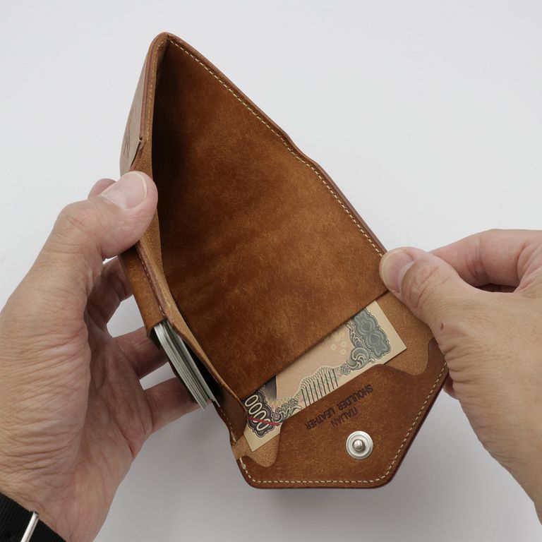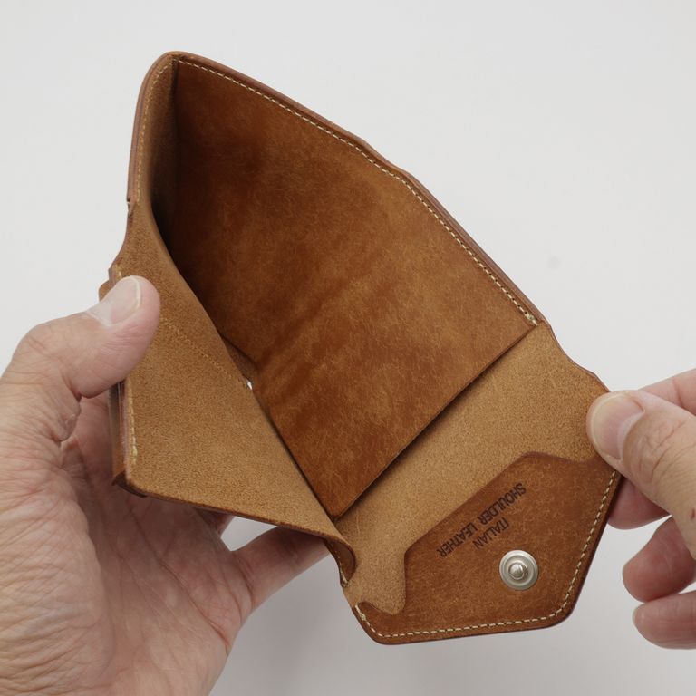 新入荷 cramp 【Cramp】コンパクトウォレット プエブロ ネイビー ¥22,000 税込 200 ポイント還元 発送目安日:1–2営業日 この商品は 送料無料 でお届けします 注文 サイズ(採寸)情報 質問する お気に入り お電話でもご注文いただけます!お電話の際は 商品番号:15850 をお知らせください。 電話をかける 076-245-0067 縦 横 厚み 重量 75 100 30 80 単位:mm(重量:グラム) 商品説明 最高峰のエイジング「プエブロ」。池之端銀革店「Cramp」の人気モデル「コンパクトウォレット」に、経年変化が魅力のイタリア革「Pueblo(プエブロ)」バージョンが登場。「Cramp」ロゴ入りオリジナルホックは上品なシルバー仕上げに、内装のブランドネームは素押しで統一し、すっきりとシャープな印象に。革本来の表情と質感を存分に堪能できる、洗練されたルックスに仕上げています。コンパクトながらも長財布級の収納力。女性でもしっかりと握れるコンパクトなサイズながら、長財布並みのカード収納を実現。マチ付きのメインポケットに厚手のプラスチックカードを10枚程度、もう一方に3枚程度、合計で最大13枚のプラスチックカードを収納可能です。出し入れスムーズで使いやすい札入れ。札入れは、1万円札を無理なく収納できるサイズで、お札の端が遊ばないよう、フラップ裏に挟み込んで固定できます。札入れ奥手側は表革を使用しているため、お札の滑りが良く、出し入れもスムーズです。見やすさ使いやすさを両立した小銭入れ。小銭入れは本体背面に配置され、大きく開くので視認性も抜群。小銭を入れて膨らんだ際に留めやすいようにホックの位置が絶妙に調整されています。革好きも納得の職人技が光る逸品。元々ベルト製造を専門としていたメーカーらしく、コバ(革のヘリ)を本磨き※で美しく仕上げています。コンパクトなサイズながら、日本の職人技で細部まで丁寧に仕立てられています。革の重厚感も素晴らしく、革好きも納得の逸品です。プエブロ:イタリア革「Pueblo(プエブロ)」は、トスカーナ地方の名門タンナー「Badalassi Carlo S.p.A.(バダラッシ・カルロ社)」によるフルベジタブルタンニンレザーです。表面を職人が手作業でバフィング(擦り加工)することで、和紙のような独特のマットでザラッとした質感に仕上げています。使い込むほどに艶が増し、色味が深まり、まるで別の革のように変化していくダイナミックなエイジングを楽しめます。本磨き:革の断面をやすりなどで丁寧に整えた後、布海苔や磨き剤を塗り込み、柔らかい布などで何度も擦り付けて圧力をかけることで、文字通り「磨き上げる」作業のことです。手間暇はかかりますが、仕上がりが美しく、革の断面が割れにくいため、製品を長く美しい状態で保つことができます。 ギフトラッピングについて 大切な方への贈り物、気持ちを込めてラッピングいたします。大事な贈り物。ギフトボックスやラッピングペーパー、ヴィンテージの切手やマッチラベルを使って可愛くお包みします。当店でお取り扱いしております商品には商品ページで特に説明しているもの以外には専用の箱類は付属しません。 ギフトラッピングご希望のお客様にはお店でご用意できる資材を駆使してお相手の方に喜んでいただけますよう、心を込めてお包みさせていただきます。尚、ラッピングの体裁については当店にお任せください。ご用意は一般的なギフト用ラッピングになり、「のし」などの特別なご要望については対応しておりませんのでご了承ください。【ラッピングサービス有料化のお知らせ】これまで無料でご提供していたラッピングサービスですが、誠に勝手ながら有料(220円)とさせていただくことになりました。お客様にはご負担をおかけいたしますが、引き続き心を込めて対応いたしますので、ご理解のほどよろしくお願い申し上げます。 詳細情報 カラー ネイビー 素材 イタリア製牛革 ブランド cramp 品番 Cr-170PB-NV カテゴリ 財布・小物 > 財布 > 折り財布 財布・小物 > 財布 > コンパクト財布 性別 男性 返品 返品可能条件はこちら ラッピング 可能 発送目安日 1–2営業日 配送方法 ヤマト運輸(送料について) お支払い方法 本商品でご利用可能な決済方法は下記となります。各お支払い方法についての詳細はショッピングガイドをご覧ください クレジットカード払い セキュリティコードとはクレジットカード裏面のサイン欄上部に記載されている数字の一番右の3桁の数字です。アメリカン・エキスプレス・カード提携のクレジットカードの場合、セキュリティコードはクレジットカード表面に記載されている4桁の数字となります。 あと払い (ペイディ) 事前登録不要、クレジットカード登録不要。 メールアドレスと携帯電話番号だけで、今すぐ購入可能。 お支払いは翌月27日までに、コンビニ払い・銀行振込・口座振替で。 1か月に何度購入しても、お支払いは翌月まとめて1回でOK。 さらに、ペイディアプリから本人確認をすると、分割手数料無料*の3回あと払い**、ご利用可能