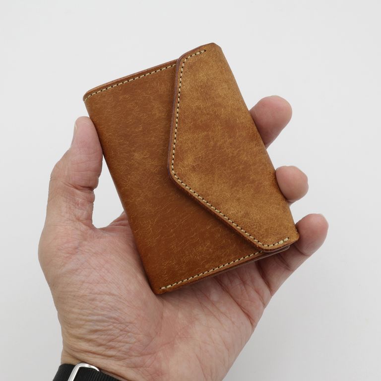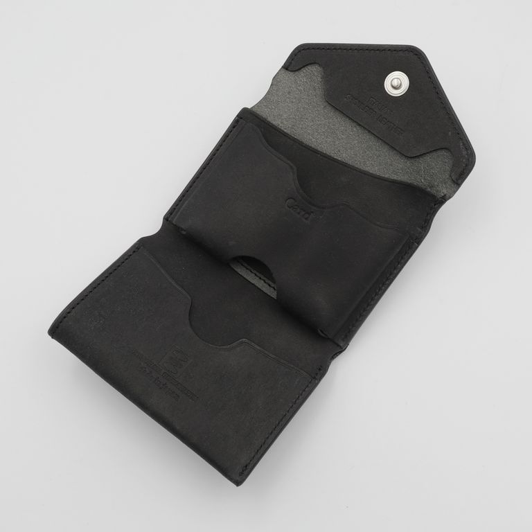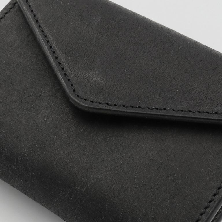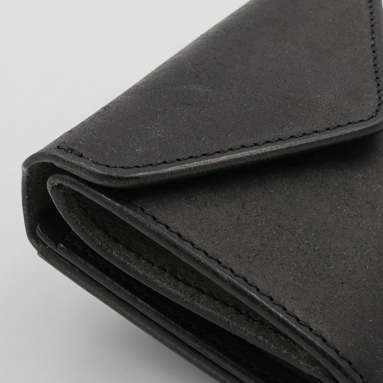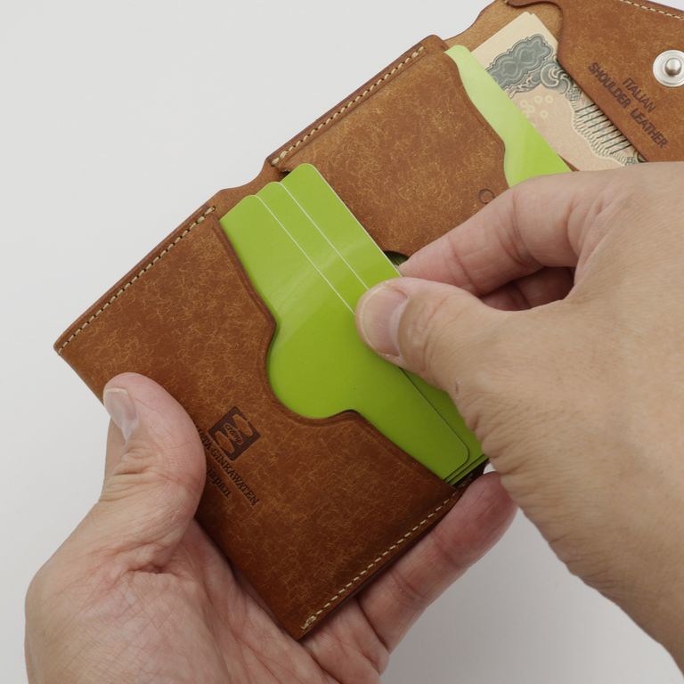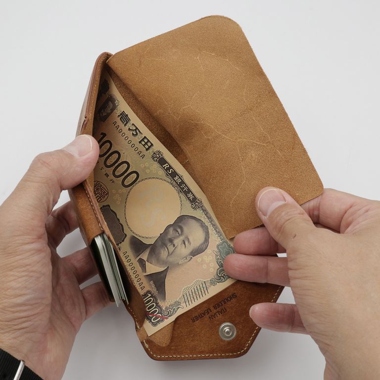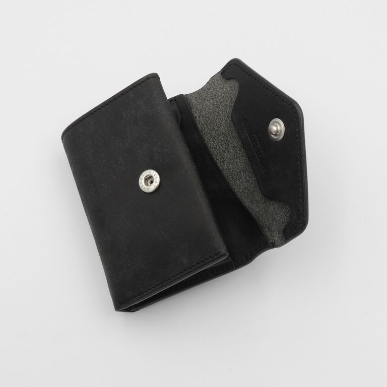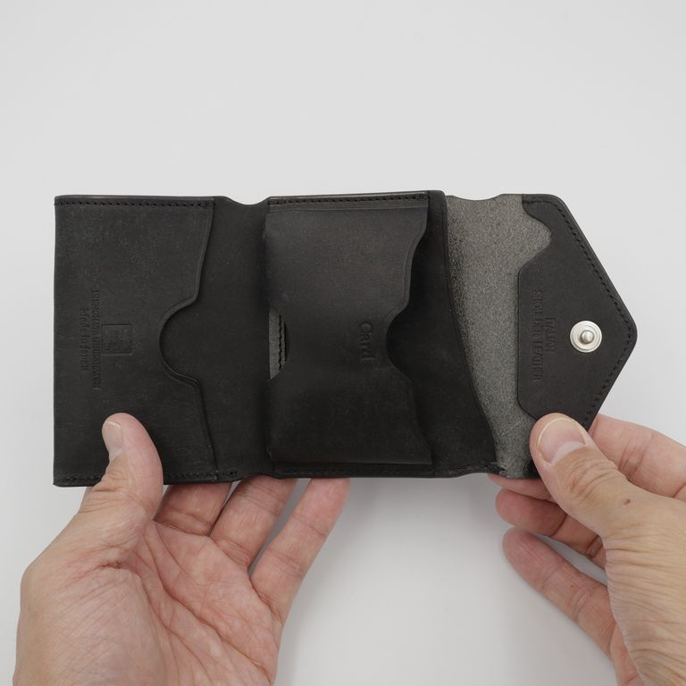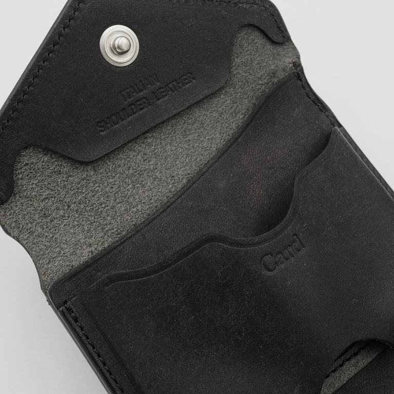 新入荷 cramp 【Cramp】コンパクトウォレット プエブロ ブラック ¥22,000 税込 200 ポイント還元 発送目安日:1–2営業日 この商品は 送料無料 でお届けします 注文 サイズ(採寸)情報 質問する お気に入り お電話でもご注文いただけます!お電話の際は 商品番号:15852 をお知らせください。 電話をかける 076-245-0067 縦 横 厚み 重量 75 100 30 80 単位:mm(重量:グラム) 商品説明 最高峰のエイジング「プエブロ」。池之端銀革店「Cramp」の人気モデル「コンパクトウォレット」に、経年変化が魅力のイタリア革「Pueblo(プエブロ)」バージョンが登場。「Cramp」ロゴ入りオリジナルホックは上品なシルバー仕上げに、内装のブランドネームは素押しで統一し、すっきりとシャープな印象に。革本来の表情と質感を存分に堪能できる、洗練されたルックスに仕上げています。コンパクトながらも長財布級の収納力。女性でもしっかりと握れるコンパクトなサイズながら、長財布並みのカード収納を実現。マチ付きのメインポケットに厚手のプラスチックカードを10枚程度、もう一方に3枚程度、合計で最大13枚のプラスチックカードを収納可能です。出し入れスムーズで使いやすい札入れ。札入れは、1万円札を無理なく収納できるサイズで、お札の端が遊ばないよう、フラップ裏に挟み込んで固定できます。札入れ奥手側は表革を使用しているため、お札の滑りが良く、出し入れもスムーズです。見やすさ使いやすさを両立した小銭入れ。小銭入れは本体背面に配置され、大きく開くので視認性も抜群。小銭を入れて膨らんだ際に留めやすいようにホックの位置が絶妙に調整されています。革好きも納得の職人技が光る逸品。元々ベルト製造を専門としていたメーカーらしく、コバ(革のヘリ)を本磨き※で美しく仕上げています。コンパクトなサイズながら、日本の職人技で細部まで丁寧に仕立てられています。革の重厚感も素晴らしく、革好きも納得の逸品です。プエブロ:イタリア革「Pueblo(プエブロ)」は、トスカーナ地方の名門タンナー「Badalassi Carlo S.p.A.(バダラッシ・カルロ社)」によるフルベジタブルタンニンレザーです。表面を職人が手作業でバフィング(擦り加工)することで、和紙のような独特のマットでザラッとした質感に仕上げています。使い込むほどに艶が増し、色味が深まり、まるで別の革のように変化していくダイナミックなエイジングを楽しめます。本磨き:革の断面をやすりなどで丁寧に整えた後、布海苔や磨き剤を塗り込み、柔らかい布などで何度も擦り付けて圧力をかけることで、文字通り「磨き上げる」作業のことです。手間暇はかかりますが、仕上がりが美しく、革の断面が割れにくいため、製品を長く美しい状態で保つことができます。 ギフトラッピングについて 大切な方への贈り物、気持ちを込めてラッピングいたします。大事な贈り物。ギフトボックスやラッピングペーパー、ヴィンテージの切手やマッチラベルを使って可愛くお包みします。当店でお取り扱いしております商品には商品ページで特に説明しているもの以外には専用の箱類は付属しません。 ギフトラッピングご希望のお客様にはお店でご用意できる資材を駆使してお相手の方に喜んでいただけますよう、心を込めてお包みさせていただきます。尚、ラッピングの体裁については当店にお任せください。ご用意は一般的なギフト用ラッピングになり、「のし」などの特別なご要望については対応しておりませんのでご了承ください。【ラッピングサービス有料化のお知らせ】これまで無料でご提供していたラッピングサービスですが、誠に勝手ながら有料(220円)とさせていただくことになりました。お客様にはご負担をおかけいたしますが、引き続き心を込めて対応いたしますので、ご理解のほどよろしくお願い申し上げます。 詳細情報 カラー ブラック 素材 イタリア製牛革 ブランド cramp 品番 Cr-170PB-BK カテゴリ 財布・小物 > 財布 > 折り財布 財布・小物 > 財布 > コンパクト財布 性別 男性 返品 返品可能条件はこちら ラッピング 可能 発送目安日 1–2営業日 配送方法 ヤマト運輸(送料について) お支払い方法 本商品でご利用可能な決済方法は下記となります。各お支払い方法についての詳細はショッピングガイドをご覧ください クレジットカード払い セキュリティコードとはクレジットカード裏面のサイン欄上部に記載されている数字の一番右の3桁の数字です。アメリカン・エキスプレス・カード提携のクレジットカードの場合、セキュリティコードはクレジットカード表面に記載されている4桁の数字となります。 あと払い (ペイディ) 事前登録不要、クレジットカード登録不要。 メールアドレスと携帯電話番号だけで、今すぐ購入可能。 お支払いは翌月27日までに、コンビニ払い・銀行振込・口座振替で。 1か月に何度購入しても、お支払いは翌月まとめて1回でOK。 さらに、ペイディアプリから本人確認をすると、分割手数料無料*の3回あと払い**、ご利用可能