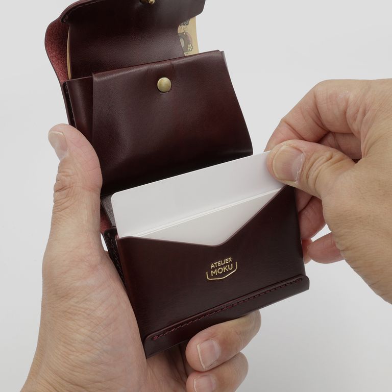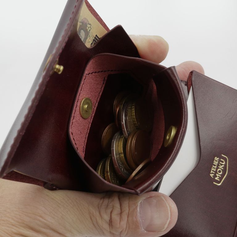新入荷 ATELIER MOKU 「三つ折りミニ財布PALUMO Rugato」black ¥24,200 税込 220 ポイント還元 発送目安日:1–2営業日 この商品は 送料無料 でお届けします 注文 サイズ(採寸)情報 質問する お気に入り お電話でもご注文いただけます!お電話の際は 商品番号:15968 をお知らせください。 電話をかける 076-245-0067 縦 横 奥行 重量 72 89 25 46 単位:mm(重量:グラム) 商品説明 小さくても万能。掌の中のオールインワン。atelier MOKUの究極に小さい三つ折り財布「PALUMO」。片手で包み込めるほどのコンパクトなサイズながら、カード・紙幣・硬貨・鍵までをひとまとめにできる実用性を備えています。ジーンズのポケットや小さめのバッグにもスマートに収まり、硬貨15枚、紙幣15枚、厚みのあるプラスチックカード6枚、さらに鍵1本まで収納可能。「小さいから我慢する」という常識を覆す、驚くほどの収納力です。コインポケットにはマグネットホックを採用。留め忘れの心配がなく、ホックを留めた状態でも開口部がフラットに収まるよう革の内部に埋め込まれています。閉じた際に隙間ができにくく、逆さにしても小銭がこぼれない特許出願中の独自設計です。紙幣収納部はお札を折らずにそのまま差し込める構造で、自然に三つ折りの形になるため折り目が付きません。奥側には親指を添えやすいカッティングが施されており、スムーズな出し入れをサポートします。外側のホックは表面をフラットに整え、出っ張りを極力抑えた設計。洋服のポケットに入れても引っ掛からず、滑らかに収まります。カードの持ち歩きも含めて最小限にしたいミニマル志向の方にぴったり。見た目のミニマルさと携帯性、そして「小さいのにストレスのない使い心地」を兼ね備えたコンパクトウォレットです。【Rugato(ルガト)】1873年創業、ベルギーで唯一のタンナー「タンナリー・マズール社」。牛ショルダーを伝統的なタンニンなめしで作る「革の宝石」とも称される美しい革です。アルプス周辺で飼育される上質なスイス原皮を使用し、透明感と深みのある光沢の下のショルダー革特有の深いトラやシワの自然な模様がこの革の唯一無比な個性になっています、ルガトの特徴でもある深いトラシワについては、個体差が非常に大きく、ほとんどトラシワが見られないものもあれば、とても強く出ているものもあります。革自体の特徴となり模様の出方についてはお選びいただくことが出来ませんのでご了承ください。 ギフトラッピングについて 大切な方への贈り物、気持ちを込めてラッピングいたします。大事な贈り物。ギフトボックスやラッピングペーパー、ヴィンテージの切手やマッチラベルを使って可愛くお包みします。当店でお取り扱いしております商品には商品ページで特に説明しているもの以外には専用の箱類は付属しません。 ギフトラッピングご希望のお客様にはお店でご用意できる資材を駆使してお相手の方に喜んでいただけますよう、心を込めてお包みさせていただきます。尚、ラッピングの体裁については当店にお任せください。ご用意は一般的なギフト用ラッピングになり、「のし」などの特別なご要望については対応しておりませんのでご了承ください。【ラッピングサービス有料化のお知らせ】これまで無料でご提供していたラッピングサービスですが、誠に勝手ながら有料(220円)とさせていただくことになりました。お客様にはご負担をおかけいたしますが、引き続き心を込めて対応いたしますので、ご理解のほどよろしくお願い申し上げます。 詳細情報 カラー black 素材 ベルギー・マズール社「ルガト」 ブランド ATELIER MOKU 品番 PALUMO-R-BK カテゴリ 財布・小物 > 財布 > 折り財布 財布・小物 > 財布 > コンパクト財布 性別 ユニセックス 返品 返品可能条件はこちら ラッピング 可能 発送目安日 1–2営業日 配送方法 ヤマト運輸(送料について) お支払い方法 本商品でご利用可能な決済方法は下記となります。各お支払い方法についての詳細はショッピングガイドをご覧ください クレジットカード払い セキュリティコードとはクレジットカード裏面のサイン欄上部に記載されている数字の一番右の3桁の数字です。アメリカン・エキスプレス・カード提携のクレジットカードの場合、セキュリティコードはクレジットカード表面に記載されている4桁の数字となります。 あと払い (ペイディ) 事前登録不要、クレジットカード登録不要。 メールアドレスと携帯電話番号だけで、今すぐ購入可能。 お支払いは翌月27日までに、コンビニ払い・銀行振込・口座振替で。 1か月に何度購入しても、お支払いは翌月まとめて1回でOK。 さらに、ペイディアプリから本人確認をすると、分割手数料無料*の3回あと払い**、ご利用可能額の確認、使い過ぎを防止する予算設定など、便利な機能がご利用いただけます。 *口座振替・銀行振込のみ無料 **1回のご利用金額が3,000円以上の場合のみ利用可能 代金引換 代金引換とは、ご注文いただきました商品をお受け取りい