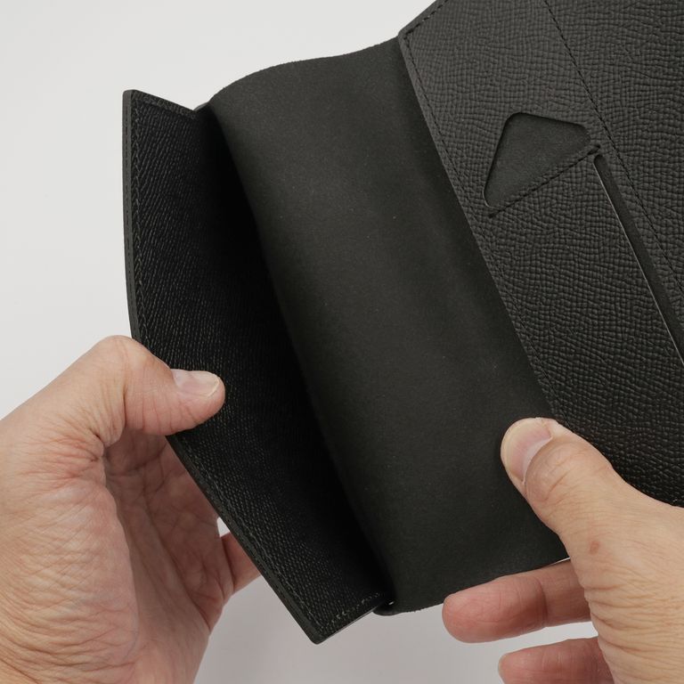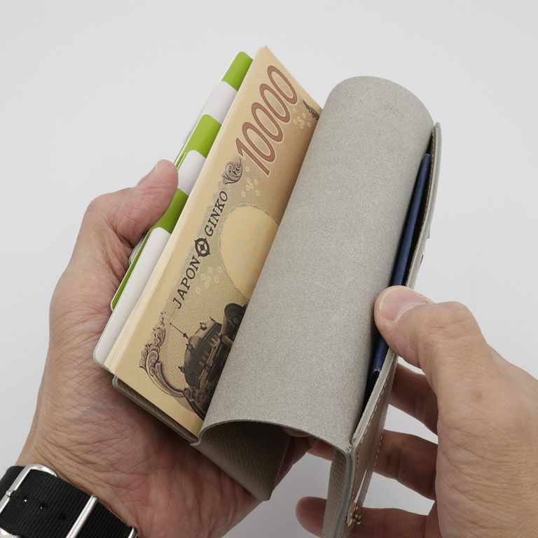 新入荷 ATELIER MOKU 「小さく薄い長財布UNO ver.2 Noblessa」black ¥31,900 税込 290 ポイント還元 発送目安日:1–2営業日 この商品は 送料無料 でお届けします 注文 サイズ(採寸)情報 質問する お気に入り お電話でもご注文いただけます!お電話の際は 商品番号:15973 をお知らせください。 電話をかける 076-245-0067 縦 横 奥行 重量 90 143 17 90 単位:mm(重量:グラム) 商品説明 長財布の最終形態。MOKUが導き出した新しい標準。atelier MOKUの小さく薄い長財布「UNO ver.2」。従来の長財布と比べても驚くほどコンパクトな、163×95×10mmという設計ながら、硬貨20枚、紙幣20枚、厚みのあるプラスチックカード13枚をしっかり収納。中身を入れても厚さはわずか約18mmと、財布特有の“ふくらみ”を極力抑えたスリムなフォルムが特徴です。カードポケットは縦向きに配置し、重なりを最小限にすることで厚みを軽減。仕切りを減らしたシンプルな構造ながら、視認性と取り出しやすさを両立しています。直接アクセスできるコインポケットは浅めの設計で、硬貨がひと目で確認でき、スムーズに取り出せます。お札収納部は左右の縫製を排し、折り込みとホックで構成するデザイン特許を取得した独自構造を採用。最小限の横幅でありながら大きく開く使いやすさを実現しています。紙幣の出し入れが滑らかで、取り扱いのストレスを感じさせません。さらに、コインポケット側の面に独立したICカード専用ポケットを備え、改札でのタッチにも対応。その隣のフリーポケットには板鍵や紛失防止タグなどを収納できます。見た目はミニマルで洗練され、ポケットに入れてもシルエットを崩さず、バッグの中でも場所を取りません。「薄さ」「小ささ」「使いやすさ」を高次元で融合させた、ミニマル志向のための長財布です。【Noblessa(ノブレッサ)】1864年から皮革を制作しつづけている有名老舗タンナーであるドイツ「Ludwig Perlinger GmbH(ペリンガー社)」の最高級レザー。ペリンガー社は、150年以上に渡って培ってきた革鞣しの技術と経験と近代的な製造方法と合わせることで、安定した最高品質の革を供給しています。品質の良さに加え環境にも配慮しているため、世界中のトップブランドで採用されています。革表面を型押しで整えたあとに顔料で仕上げた均一で上品な表情が一番の特徴です。張り感があり型崩れを起こしにくく、水も簡単には染み込まないので汚れや擦れには強い特性を持ちます。半面、経年変化(エイジング)は緩やかで、長く同じ風合いで利用したい方にはおススメな革でもあります。 ギフトラッピングについて 大切な方への贈り物、気持ちを込めてラッピングいたします。大事な贈り物。ギフトボックスやラッピングペーパー、ヴィンテージの切手やマッチラベルを使って可愛くお包みします。当店でお取り扱いしております商品には商品ページで特に説明しているもの以外には専用の箱類は付属しません。 ギフトラッピングご希望のお客様にはお店でご用意できる資材を駆使してお相手の方に喜んでいただけますよう、心を込めてお包みさせていただきます。尚、ラッピングの体裁については当店にお任せください。ご用意は一般的なギフト用ラッピングになり、「のし」などの特別なご要望については対応しておりませんのでご了承ください。【ラッピングサービス有料化のお知らせ】これまで無料でご提供していたラッピングサービスですが、誠に勝手ながら有料(220円)とさせていただくことになりました。お客様にはご負担をおかけいたしますが、引き続き心を込めて対応いたしますので、ご理解のほどよろしくお願い申し上げます。 詳細情報 カラー black 素材 ドイツ・ぺリンガー社「ノブレッサ」 ブランド ATELIER MOKU 品番 UNO2-N-BK カテゴリ 財布・小物 > 財布 > 長財布 財布・小物 > 財布 > 薄財布 性別 ユニセックス 返品 返品可能条件はこちら ラッピング 可能 発送目安日 1–2営業日 配送方法 ヤマト運輸(送料について) お支払い方法 本商品でご利用可能な決済方法は下記となります。各お支払い方法についての詳細はショッピングガイドをご覧ください クレジットカード払い セキュリティコードとはクレジットカード裏面のサイン欄上部に記載されている数字の一番右の3桁の数字です。アメリカン・エキスプレス・カード提携のクレジットカードの場合、セキュリティコードはクレジットカード表面に記載されている4桁の数字となります。 あと払い (ペイディ) 事前登録不要、クレジットカード登録不要。 メールアドレスと携帯電話番号だけで、今すぐ購入可能。 お支払いは翌月27日までに、コンビニ払い・銀行振込・口座振替で。 1か月に何度購入しても、お支払いは翌月まとめて1回でOK。 さらに、ペイディアプリから本人確認をすると、分割手数料無料*の3回あと払い**、ご利用可能額の確認、使い過ぎを防止する予算設定など、便利な機能がご利用いただけます。 *口座振替・銀行振込のみ無料 **1回のご利用金額が3,000円以上の場合