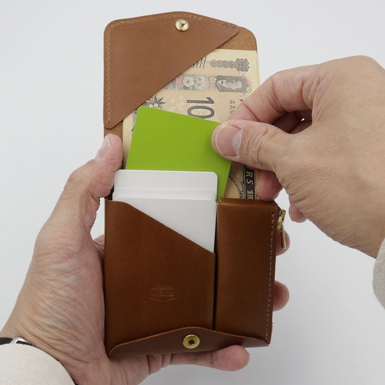 新入荷 ATELIER MOKU 「小さく薄い財布SAKU ver.3 Buttero」darknavy ¥19,800 税込 180 ポイント還元 発送目安日:1–2営業日 この商品は 送料無料 でお届けします 注文 サイズ(採寸)情報 質問する お気に入り お電話でもご注文いただけます!お電話の際は 商品番号:15975 をお知らせください。 電話をかける 076-245-0067 縦 横 奥行 重量 91 93 20 53 単位:mm(重量:グラム) 商品説明 「薄く」「小さく」。すべてがミニマルに完結する、MOKUの象徴。atelier MOKUの手のひらサイズのコンパクト財布「SAKU ver.3」。91×93mmのほぼ正方形のフォルムに、カード・紙幣・硬貨を効率的に収められるよう設計されています。見た目のミニマルさからは想像できない収納力をもち、最大で硬貨18枚、紙幣15枚、厚みのあるプラスチックカード10枚まで収納可能です。それだけ入れても厚さはわずか約22mm。洋服のポケットにもすっきり収まります。上部に配置され直接アクセスできるコインポケットは500円玉がちょうど収まる深さで、両サイドを軽く押すだけで大きく開く構造。視認性が高く、小銭が底に溜まりにくいため、スムーズに出し入れできます。カードポケットは右側に角度をつけ、差し入れや取り出しがしやすい設計。目的のカードがひと目で見つかる使い勝手の良さが魅力です。紙幣はコインポケットとカードポケットの背面に挟み込み、奥側の大きめの札押さえで千円札までしっかりとホールド。外側のホックは表面をフラットに整え、出っ張りを極力抑えた設計。洋服のポケットに入れても引っ掛からず、滑らかに収まります。見た目の美しさと機能性を両立した、「使うほどに完成度を実感できるコンパクトウォレット」です。【Buttero(ブッテーロ)】イタリア・トスカーナ地方の老舗タンナー「Conceria Walpier(ワルピエ社)」のフルタンニンのオイルレザー。トラ(首のしわ)や血筋が見られる成牛のショルダー革を使いながら、あえて顔料仕上げを施さず染料仕上げで透明感のある仕上げをしています。革好きにはとても評価の高い革で、繊維密度が高く非常に丈夫で、使い込むことで色が深くなり、独特の風合いに変化していきます。オイルを多く含んでいるので、つめ跡など多少の小傷は指の腹で擦ることで消すことが出来ます。 ギフトラッピングについて 大切な方への贈り物、気持ちを込めてラッピングいたします。大事な贈り物。ギフトボックスやラッピングペーパー、ヴィンテージの切手やマッチラベルを使って可愛くお包みします。当店でお取り扱いしております商品には商品ページで特に説明しているもの以外には専用の箱類は付属しません。 ギフトラッピングご希望のお客様にはお店でご用意できる資材を駆使してお相手の方に喜んでいただけますよう、心を込めてお包みさせていただきます。尚、ラッピングの体裁については当店にお任せください。ご用意は一般的なギフト用ラッピングになり、「のし」などの特別なご要望については対応しておりませんのでご了承ください。【ラッピングサービス有料化のお知らせ】これまで無料でご提供していたラッピングサービスですが、誠に勝手ながら有料(220円)とさせていただくことになりました。お客様にはご負担をおかけいたしますが、引き続き心を込めて対応いたしますので、ご理解のほどよろしくお願い申し上げます。 詳細情報 カラー darknavy 素材 イタリア・ワルピエ社「ブッテーロ」 ブランド ATELIER MOKU 品番 SAKU3-B-DNV カテゴリ 財布・小物 > 財布 > 折り財布 財布・小物 > 財布 > コンパクト財布 財布・小物 > 財布 > 薄財布 性別 ユニセックス 返品 返品可能条件はこちら ラッピング 可能 発送目安日 1–2営業日 配送方法 ヤマト運輸(送料について) お支払い方法 本商品でご利用可能な決済方法は下記となります。各お支払い方法についての詳細はショッピングガイドをご覧ください クレジットカード払い セキュリティコードとはクレジットカード裏面のサイン欄上部に記載されている数字の一番右の3桁の数字です。アメリカン・エキスプレス・カード提携のクレジットカードの場合、セキュリティコードはクレジットカード表面に記載されている4桁の数字となります。 あと払い (ペイディ) 事前登録不要、クレジットカード登録不要。 メールアドレスと携帯電話番号だけで、今すぐ購入可能。 お支払いは翌月27日までに、コンビニ払い・銀行振込・口座振替で。 1か月に何度購入しても、お支払いは翌月まとめて1回でOK。 さらに、ペイディアプリから本人確認をすると、分割手数料無料*の3回あと払い**、ご利用可能額の確認、使い過ぎを防止する予算設定など、便利な機能がご利用いただけます。 *口座振替・銀行振込のみ無料 **1回のご利用金額が3,000円以上の場合のみ利用可能 代金引換 代金引換とは、ご注文いただきました商品をお受け取りいただく際に商品と引き換えに、配送業者へ商品代金を現金又はクレジットカード・デビットカードにて直接お渡しいただくお支払方法です。代金引換で