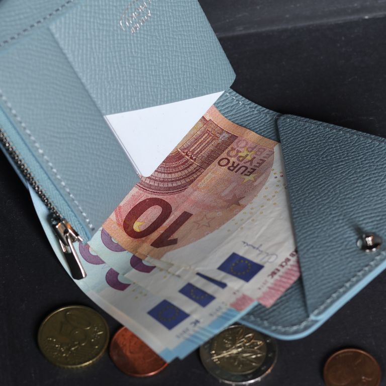 91×93mmのほぼ正方形のフォルムに、カード・紙幣・硬貨を効率的に収められるよう設計されています。見た目のミニマルさからは想像できない収納力をもち、最大で硬貨18枚、紙幣15枚、厚みのあるプラスチックカード10枚まで収納可能です。