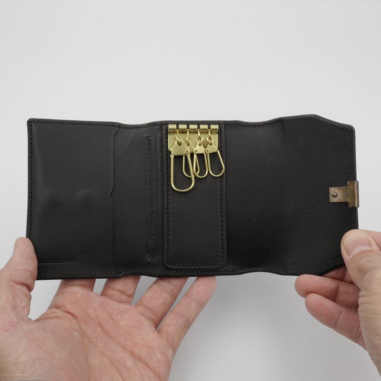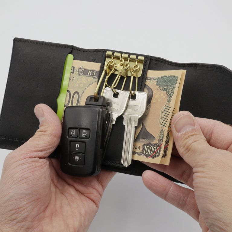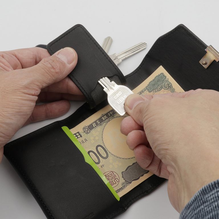 新入荷 在庫なし 池之端銀革店 【Dual】コイン&キーケース サドルプルアップ ブラック ¥20,350 税込 185 ポイント還元 この商品は 送料無料 でお届けします 注文 サイズ(採寸)情報 質問する お気に入り お電話でもご注文いただけます!お電話の際は 商品番号:16149 をお知らせください。 電話をかける 076-245-0067 縦 横 厚み 重量 72 105 25 82 単位:mm(重量:グラム) 商品説明 クラシカルな佇まいと、現代的な機能性を兼ね備えたマルチキーケース。池之端銀革店「Dual」シリーズのコイン&キーケースは、アイコニックなコバホックやフラップの型押しなど、クラシカルな意匠が印象的な一品です。メインの用途はキーケースですが、鍵だけでなくお札・小銭・カードをまとめて持ち歩けるマルチな仕様。厚みとコシのあるサドルプルアップレザー※を使用し、使い込むほどに革の表情が深まっていきます。手に収まるコンパクトなサイズ感ながら、無駄のない収納設計。ホックを開けると、すぐ下に 小銭やカードを収納できるフラップポケット。さらに開くと 4連キーフックとカードポケット を配置しています。キーフックの後ろにお札を挟むこともでき、台座の裏面には板鍵などを収納できる隠しポケットも備えています。加えて、外側背面にはカードが収まるサイズのポケットを装備。日常に必要なものをスマートにまとめられるキーケースです。※カードや小銭など入れるものの量により異なりますが、キーレスなど厚みのある鍵はキーフックに取り付け、外側に出しての使用をおすすめします。商品の規格以上に物を収納した場合、ホックが留まらない場合がございますのでご注意ください。革好きも納得の職人技が光る逸品。元々ベルト製造を専門としていたメーカーらしく、コバ(革のヘリ)を本磨き※で美しく仕上げています。コンパクトなサイズながら、日本の職人技で細部まで丁寧に仕立てられています。革の重厚感も素晴らしく、革好きも納得の逸品です。サドルプルアップレザー:牛革を植物タンニンで鞣し、オイルをたっぷりと含ませた革です。堅牢で耐久性に優れており、使い込むほどに光沢が増し、豊かな風合いへと変化します。本磨き:革の断面をやすりなどで丁寧に整えた後、布海苔や磨き剤を塗り込み、柔らかい布などで何度も擦り付けて圧力をかけることで、文字通り「磨き上げる」作業のことです。手間暇はかかりますが、仕上がりが美しく、革の断面が割れにくいため、製品を長く美しい状態で保つことができます。 ギフトラッピングについて 大切な方への贈り物、気持ちを込めてラッピングいたします。大事な贈り物。ギフトボックスやラッピングペーパー、ヴィンテージの切手やマッチラベルを使って可愛くお包みします。当店でお取り扱いしております商品には商品ページで特に説明しているもの以外には専用の箱類は付属しません。 ギフトラッピングご希望のお客様にはお店でご用意できる資材を駆使してお相手の方に喜んでいただけますよう、心を込めてお包みさせていただきます。尚、ラッピングの体裁については当店にお任せください。ご用意は一般的なギフト用ラッピングになり、「のし」などの特別なご要望については対応しておりませんのでご了承ください。【ラッピングサービス有料化のお知らせ】これまで無料でご提供していたラッピングサービスですが、誠に勝手ながら有料(220円)とさせていただくことになりました。お客様にはご負担をおかけいたしますが、引き続き心を込めて対応いたしますので、ご理解のほどよろしくお願い申し上げます。 詳細情報 カラー ブラック 素材 サドルプルアップレザー 生産国 日本 ブランド 池之端銀革店 品番 Dcr-1036BK カテゴリ 財布・小物 > キーケース / キーホルダー 性別 ユニセックス 返品 返品可能条件はこちら ラッピング 可能 配送方法 ヤマト運輸(送料について) お支払い方法 本商品でご利用可能な決済方法は下記となります。各お支払い方法についての詳細はショッピングガイドをご覧ください クレジットカード払い セキュリティコードとはクレジットカード裏面のサイン欄上部に記載されている数字の一番右の3桁の数字です。アメリカン・エキスプレス・カード提携のクレジットカードの場合、セキュリティコードはクレジットカード表面に記載されている4桁の数字となります。 あと払い (ペイディ) 事前登録不要、クレジットカード登録不要。 メールアドレスと携帯電話番号だけで、今すぐ購入可能。 お支払いは翌月27日までに、コンビニ払い・銀行振込・口座振替で。 1か月に何度購入しても、お支払いは翌月まとめて1回でOK。 さらに、ペイディアプリから本人確認をすると、分割手数料無料*の3回あと払い**、ご利用可能額の確認、使い過ぎを防止する予算設定など、便利な機能がご利用いただけます。 *口座振替・銀行振込のみ無料 **1回のご利用金額が3,000円以上の場合のみ利用可能 代金引換 代金引換とは、ご注文いただきました