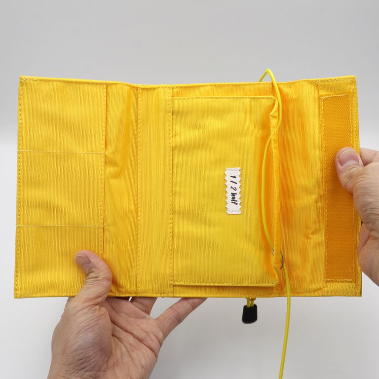 お札収納部分は、左側半分のみにマジックテープが縫い付けられており、左側にパスポート、右側にお札を入れることで、出し入れしやすく落下も防止。細部まで考え抜かれた設計が魅力です。