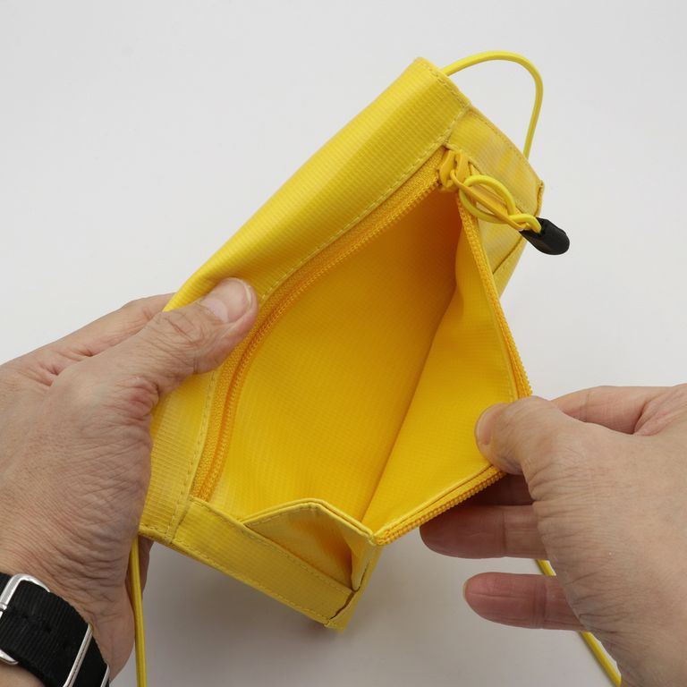 長財布サイズの本体には、現金はもちろん、パスポートやスマートフォンなど、旅先で必要なアイテムがしっかり収納できます。