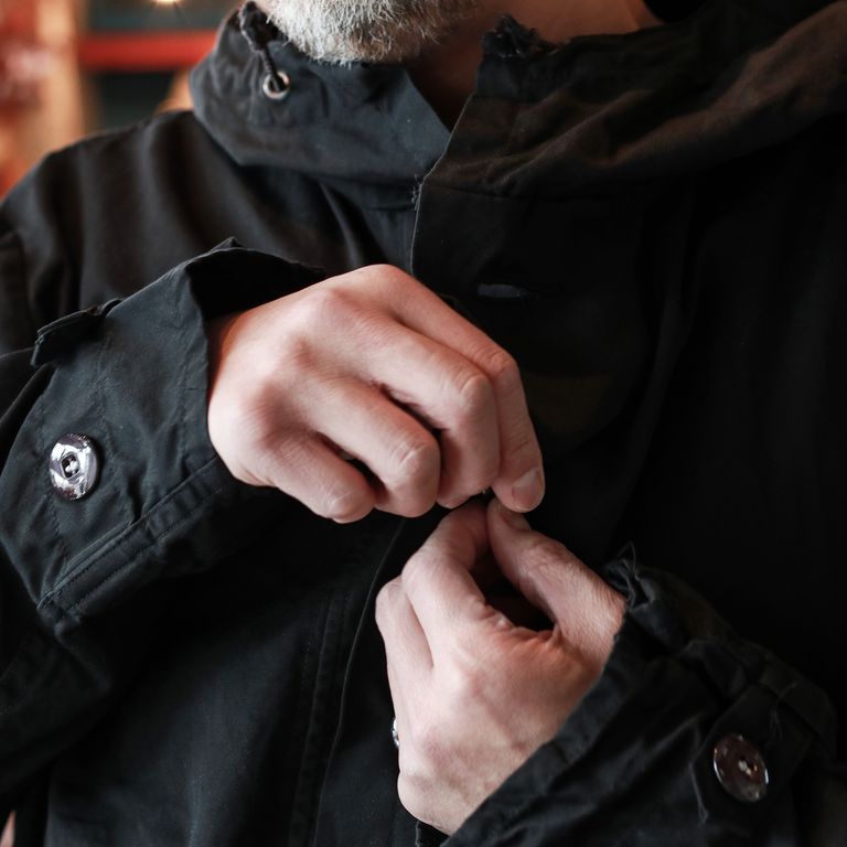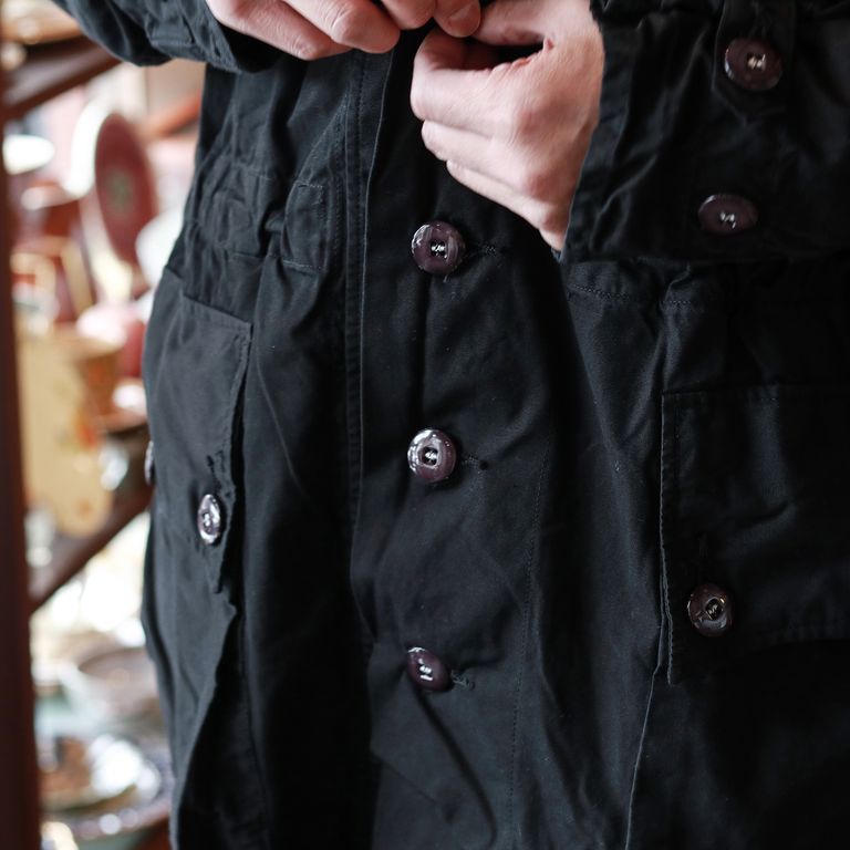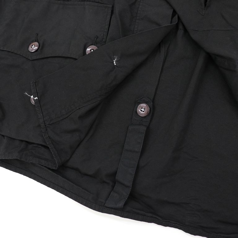 新入荷 在庫なし 「スウェーデン軍 M62 スノーパーカ」ユーズド 後染めブラック スウェーデン 1960-80s ¥17,380 税込 158 ポイント還元 この商品は 送料無料 でお届けします 注文 サイズ(採寸)情報 質問する お気に入り お電話でもご注文いただけます!お電話の際は 商品番号:16820 をお知らせください。 電話をかける 076-245-0067 身幅 肩幅 着丈 袖丈 S 73 53 83 63 M 76 54 85 66 単位:cm ※サイズ・重量は実測にて計測していますが、多少の誤差がある場合があります。 商品説明 スウェーデン軍の黒。スウェーデン軍で60年代から90年代前期頃まで実際に使用されていた、M62スノーカモパーカを黒染めしました。 Snojacka(スノーヤッケ)、Snoblus(スノーブラウス)とも呼ばれるモデルで、通常の戦闘服の上から重ね着する前提のため、身頃はたっぷりとゆとりのある設計。今の気分にも合うリラックスしたシルエットで、サイズを選ばず着用できます。裏地のない一枚仕立てのため、女性が着ても自然に肩が落ち、ボリュームが出すぎないのもポイント。身幅に余裕があるので、セーターなど厚手のアイテムも重ねやすく、春・秋・冬と3シーズン活躍します。コットン素材ならではの軽い着心地と、着込むほどに増していく風合いも魅力。フロントはボタン開閉、左右には3点留めフラップ付きの大型ポケットを配置。ポケットのない個体も多いスノーカモの中では、実用性の高い嬉しい仕様です。 ウエストとフードはコードで調整可能、袖口はボタンでアジャストできます。さらに内側の裾付近には小さな布タブが付き、股下を通して前身頃のボタンに留めることで、簡易的なロンパースのように固定することも可能です。※個体によりタグの仕様が異なります。 ※ユーズド品を後染めしているため、補修跡や細かなダメージが見られる場合があります。 ※ポケットのフラップ形状には個体差があります。 詳細情報 カラー ブラック 素材 コットン 品番 jp070ud-46 カテゴリ ファッション > 洋服 性別 ユニセックス 着用モデル情報 身長171cm 返品 返品可能条件はこちら ラッピング 不可 配送方法 佐川急便(送料について) お支払い方法 本商品でご利用可能な決済方法は下記となります。各お支払い方法についての詳細はショッピングガイドをご覧ください クレジットカード払い セキュリティコードとはクレジットカード裏面のサイン欄上部に記載されている数字の一番右の3桁の数字です。アメリカン・エキスプレス・カード提携のクレジットカードの場合、セキュリティコードはクレジットカード表面に記載されている4桁の数字となります。 あと払い (ペイディ) 事前登録不要、クレジットカード登録不要。 メールアドレスと携帯電話番号だけで、今すぐ購入可能。 お支払いは翌月27日までに、コンビニ払い・銀行振込・口座振替で。 1か月に何度購入しても、お支払いは翌月まとめて1回でOK。 さらに、ペイディアプリから本人確認をすると、分割手数料無料*の3回あと払い**、ご利用可能額の確認、使い過ぎを防止する予算設定など、便利な機能がご利用いただけます。 *口座振替・銀行振込のみ無料 **1回のご利用金額が3,000円以上の場合のみ利用可能 代金引換 代金引換とは、ご注文いただきました商品をお受け取りいただく際に商品と引き換えに、配送業者へ商品代金を現金又はクレジットカード・デビットカードにて直接お渡しいただくお支払方法です。代金引換でのお支払は手数料324円が発生します。 銀行振込 商品の発送は入金確認後となります。振込先口座はご注文後にメールにてご案内いたします。振込みの際に発生する手数料はお客様負担となりますので予めご了承くださいませ。 楽天ペイ サイズ(採寸)情報 身幅 肩幅 着丈 袖丈 S 73 53 83 63 M 76 54 85 66 単位:cm ※サイズ・重量は実測にて計測していますが、多少の誤差がある場合があります。 このアイテムをシェア この商品について質問する
