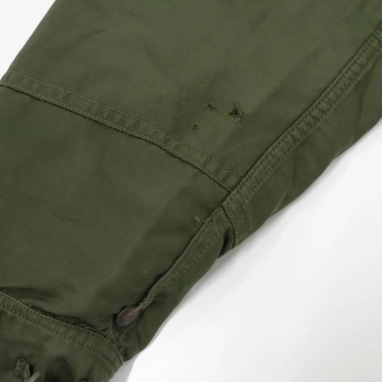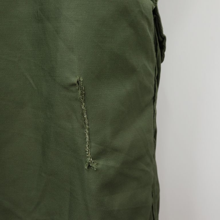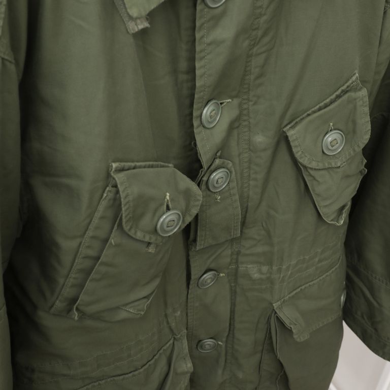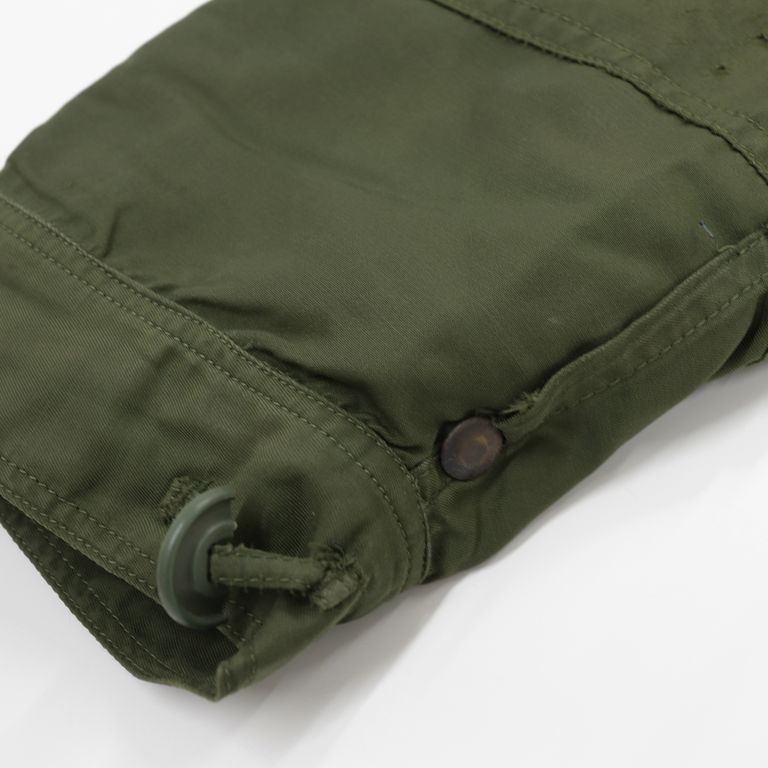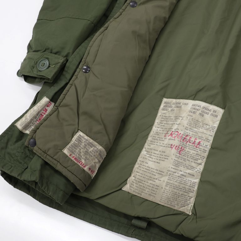 新入荷 「カナダ軍 ECWコンバットパーカー フルセット」ユーズド カナダ 1980-90s ¥49,500 税込 450 ポイント還元 発送目安日:1–2営業日 この商品は 送料無料 でお届けします 注文 サイズ(採寸)情報 質問する お気に入り お電話でもご注文いただけます!お電話の際は 商品番号:16831 をお知らせください。 電話をかける 076-245-0067 着丈 身幅 肩幅 袖丈 90 60 52 62 単位:cm ※サイズ・重量は実測にて計測していますが、多少の誤差がある場合があります。 商品説明 ミリタリーパーカ、至極の名作。1974年よりカナダ軍で採用され、2000年代初頭まで使用されていたECW(極寒地用)コンバットパーカー。フードとライナーが付属するフルセット仕様です。 こちらの個体は後期型と言われる80年代以降のモデルのユーズドです。その重厚な佇まいから、ミリタリー好きの間では最高のモッズパーカとして語られることも多いモデル。そもそもの放出数も限られており、市場に出回る機会も多くはありません。シェルはナイロン65%、コットン35%のNYCO(ナイコ)サテン生地。しなやかさとタフさを兼ね備えた、軍用ならではの素材感です。フルセット着用、フード取り外し、ライナー取り外し、ライナー単体など、複数の着こなしが可能。気温やスタイリングに応じて自在にアレンジできます。ECWは「EXTREME COLD WEATHER」の略。極寒地での使用を想定して開発されたモデルで、見た目通りの重厚感と高い保温性を備えています。現代でこの仕様を再現しようとすれば、相当なコストが掛かるであろうオーバースペックが素晴らしいです。フード内側はメルトンウール仕様。ウエストと裾はドローコードで調整可能、袖口はボタン仕様。ライフルマガジン収納用の胸の斜めポケットや大きめのフラップポケット、肘の補強など、機能美を感じるディテールが随所に見られます。ダメージやパーツ欠損、マーキングなどが見られるリジェクトユーズド個体です。完璧なコンディションではありませんが、リアルな使用感や経年変化も含めてミリタリーの魅力と捉えられる方におすすめします。リペアベースや素材としての活用にも。可能な限り画像を掲載しておりますので、コンディションはそちらでご判断ください。かなり本気仕様のアイテムですが、カジュアルスタイルと合わせた際の意外なバランスの良さも、このモデルの面白さです。 詳細情報 カラー オリーブドラブ 素材 ナイロンコットン 品番 wip-24102421 カテゴリ ファッション > 洋服 性別 ユニセックス 着用モデル情報 身長171cm 返品 返品可能条件はこちら ラッピング 不可 発送目安日 1–2営業日 配送方法 佐川急便(送料について) お支払い方法 本商品でご利用可能な決済方法は下記となります。各お支払い方法についての詳細はショッピングガイドをご覧ください クレジットカード払い セキュリティコードとはクレジットカード裏面のサイン欄上部に記載されている数字の一番右の3桁の数字です。アメリカン・エキスプレス・カード提携のクレジットカードの場合、セキュリティコードはクレジットカード表面に記載されている4桁の数字となります。 あと払い (ペイディ) 事前登録不要、クレジットカード登録不要。 メールアドレスと携帯電話番号だけで、今すぐ購入可能。 お支払いは翌月27日までに、コンビニ払い・銀行振込・口座振替で。 1か月に何度購入しても、お支払いは翌月まとめて1回でOK。 さらに、ペイディアプリから本人確認をすると、分割手数料無料*の3回あと払い**、ご利用可能額の確認、使い過ぎを防止する予算設定など、便利な機能がご利用いただけます。 *口座振替・銀行振込のみ無料 **1回のご利用金額が3,000円以上の場合のみ利用可能 代金引換 代金引換とは、ご注文いただきました商品をお受け取りいただく際に商品と引き換えに、配送業者へ商品代金を現金又はクレジットカード・デビットカードにて直接お渡しいただくお支払方法です。代金引換でのお支払は手数料324円が発生します。 銀行振込 商品の発送は入金確認後となります。振込先口座はご注文後にメールにてご案内いたします。振込みの際に発生する手数料はお客様負担となりますので予めご了承くださいませ。 楽天ペイ サイズ(採寸)情報 着丈 身幅 肩幅 袖丈 90 60 52 62 単位:cm ※サイズ・重量は実測にて計測していますが、多少の誤差がある場合があります。 このアイテムをシェア この商品について質問する
