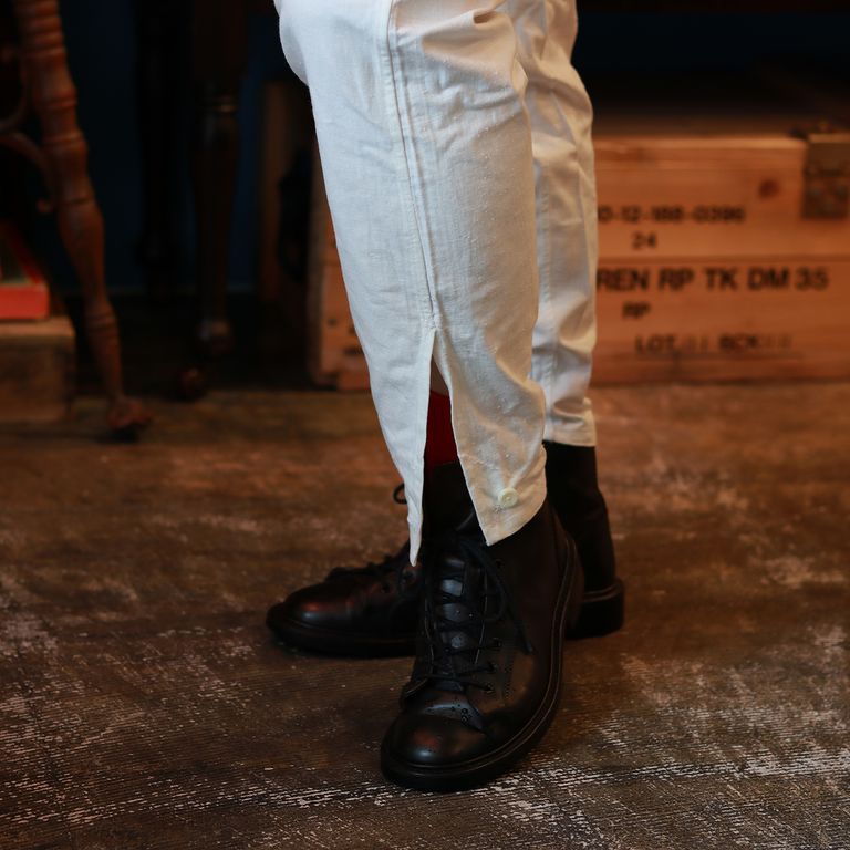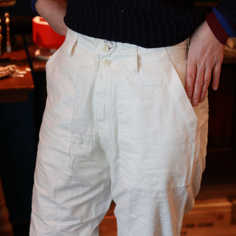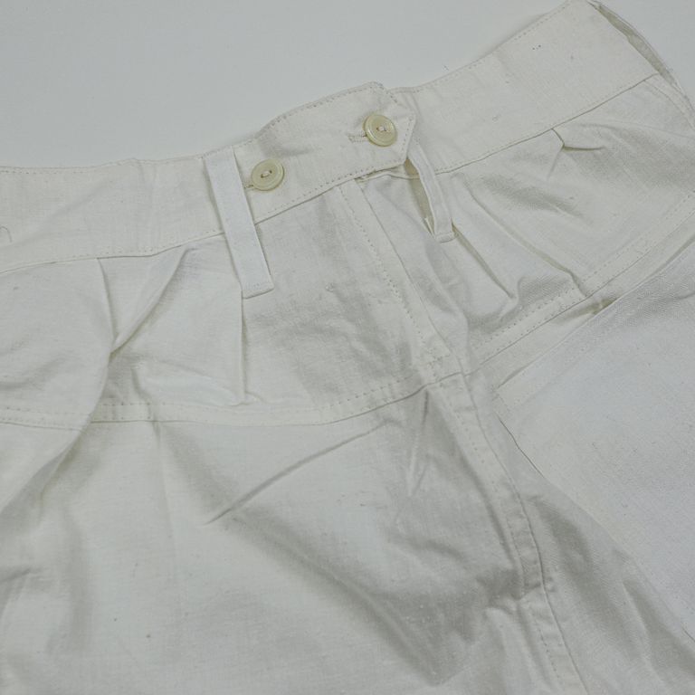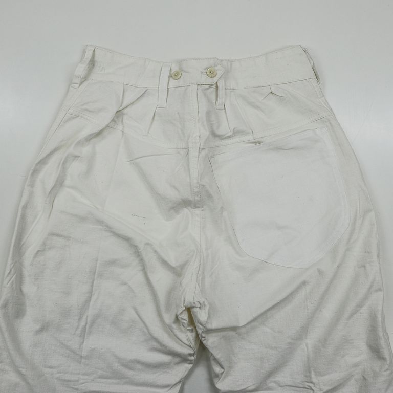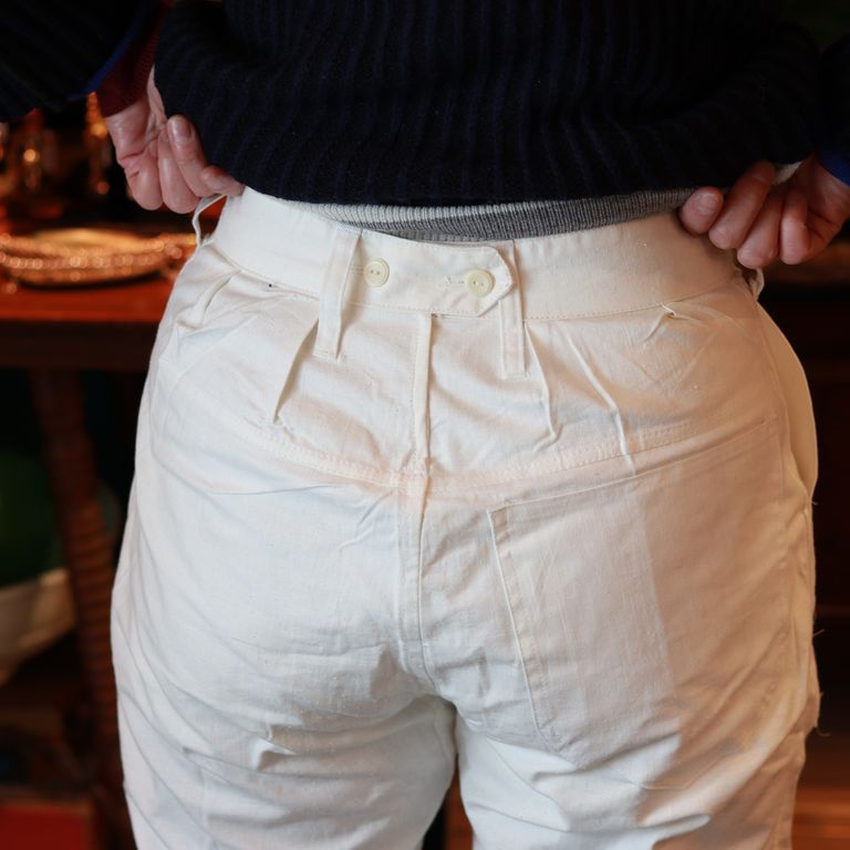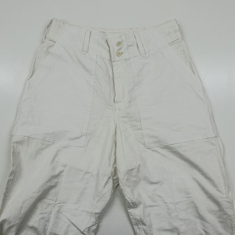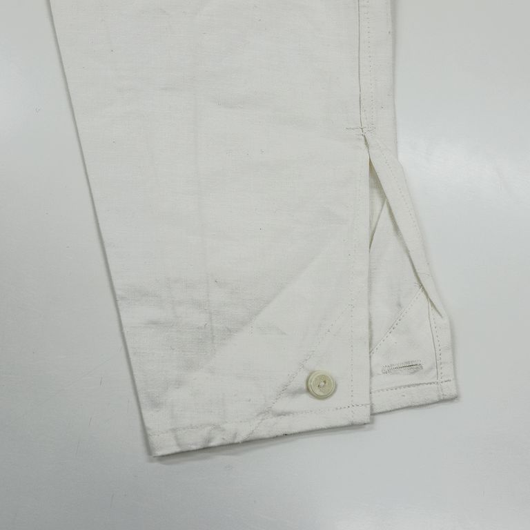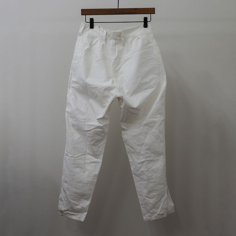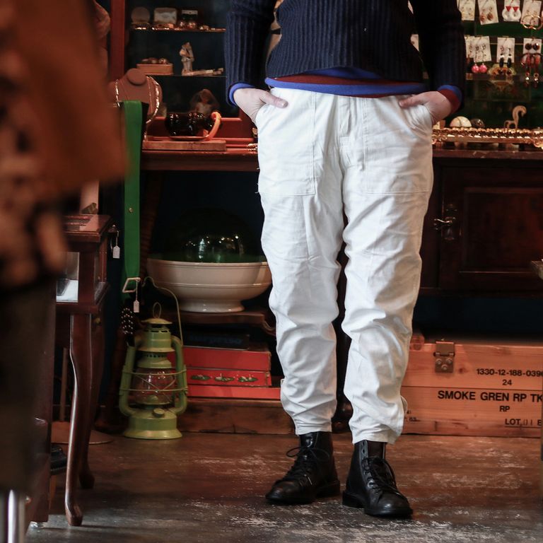 新入荷 「ロシア軍 リメイクベイカーポケットスリーピングパンツ」デッドストックリメイク ロシア 1980s ¥10,780 税込 98 ポイント還元 発送目安日:1–2営業日 11,000円(税込)以上お買い上げで 送料無料 注文 サイズ(採寸)情報 質問する お気に入り お電話でもご注文いただけます!お電話の際は 商品番号:16833 をお知らせください。 電話をかける 076-245-0067 ウエスト 総丈 股下 ワタリ 裾幅 S 72 96 69 29 13 M 84 104 72 30 14 L 90 112 78 31 15 単位:cm ※サイズ・重量は実測にて計測していますが、多少の誤差がある場合があります。 商品説明 眠れる東の支給品、ひと手間ベイク。80年代のデッドストックロシア軍スリーピングパンツをベースに、ベイカーパンツの要素を取り入れて再構築しました。本来はポケットの付かないシンプルな軍用スリーピングパンツ。 同じスリーピングパンツ生地を贅沢に使用し、サイドのベイカーポケットとバックポケットを追加することで、日常でもしっかり使える仕様へと仕立て直しています。ベルトループやボタンフライを加えることで、ラフになりすぎず、スタイリングの幅も広がり、より使いやすくなりました。ハリのあるコットン100%のヘリンボーン生地は、丈夫で肌触りが良く、真っ白ではなく生成りがかったカラーのためコーディネートにも取り入れやすい仕上がりです。適度な厚みもあり、下着が透けにくいのもポイント。 裾にかけて自然にテーパードしたシルエットも美しく、軍モノらしい無骨さとカジュアルな穿きやすさがうまく同居しています。裾にはスリットとボタンを備え、開閉によってシルエットの調整が可能。ブーツに合わせて裾を開いてラフに、留めてすっきりと穿くこともできます。ウエストはバックボタンで約2cmほどサイズ調整が可能。 股下には内側から当て布を施しているため、開脚もしやすくアクティブなシーンでも活躍します。スタンプや色味には個体差があり、一点ごとの表情もこのアイテムならではの魅力です。ミリタリーらしい無骨さやクラシカルなテイストを残しつつ、程よく着崩したリラックスしたスタイルによく似合うリメイクパンツ。 肩の力を抜いて、さらっと穿いてほしい一本です。 コルネ10周年記念ステッカーをお買い上げのお客様にプレゼント中。詳しくはこちらをクリック。 詳細情報 カラー 生成り 素材 コットン 品番 wip-23070314-46 カテゴリ ファッション > 洋服 性別 ユニセックス 着用モデル情報 身長157cm、着用サイズ:S 返品 不可 ラッピング 可能 発送目安日 1–2営業日 配送方法 佐川急便(送料について) お支払い方法 本商品でご利用可能な決済方法は下記となります。各お支払い方法についての詳細はショッピングガイドをご覧ください クレジットカード払い セキュリティコードとはクレジットカード裏面のサイン欄上部に記載されている数字の一番右の3桁の数字です。アメリカン・エキスプレス・カード提携のクレジットカードの場合、セキュリティコードはクレジットカード表面に記載されている4桁の数字となります。 あと払い (ペイディ) 事前登録不要、クレジットカード登録不要。 メールアドレスと携帯電話番号だけで、今すぐ購入可能。 お支払いは翌月27日までに、コンビニ払い・銀行振込・口座振替で。 1か月に何度購入しても、お支払いは翌月まとめて1回でOK。 さらに、ペイディアプリから本人確認をすると、分割手数料無料*の3回あと払い**、ご利用可能額の確認、使い過ぎを防止する予算設定など、便利な機能がご利用いただけます。 *口座振替・銀行振込のみ無料 **1回のご利用金額が3,000円以上の場合のみ利用可能 代金引換 代金引換とは、ご注文いただきました商品をお受け取りいただく際に商品と引き換えに、配送業者へ商品代金を現金又はクレジットカード・デビットカードにて直接お渡しいただくお支払方法です。代金引換でのお支払は手数料324円が発生します。 銀行振込 商品の発送は入金確認後となります。振込先口座はご注文後にメールにてご案内いたします。振込みの際に発生する手数料はお客様負担となりますので予めご了承くださいませ。 楽天ペイ サイズ(採寸)情報 ウエスト 総丈 股下 ワタリ 裾幅 S 72 96 69 29 13 M 84 104 72 30 14 L 90 112 78 31 15 単位:cm ※サイズ・重量は実測にて計測していますが、多少の誤差がある場合があります。 このアイテムをシェア この商品について質問する