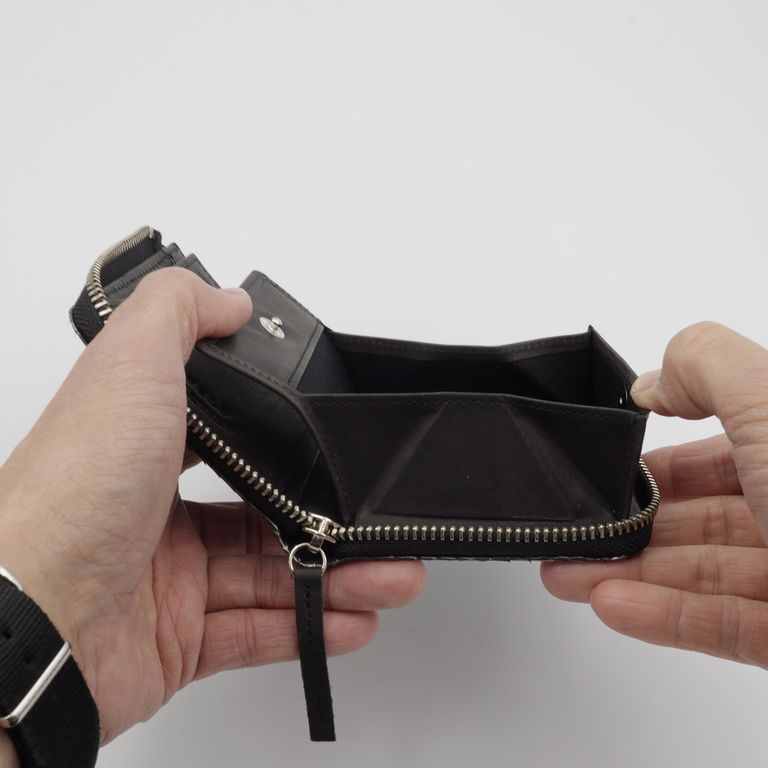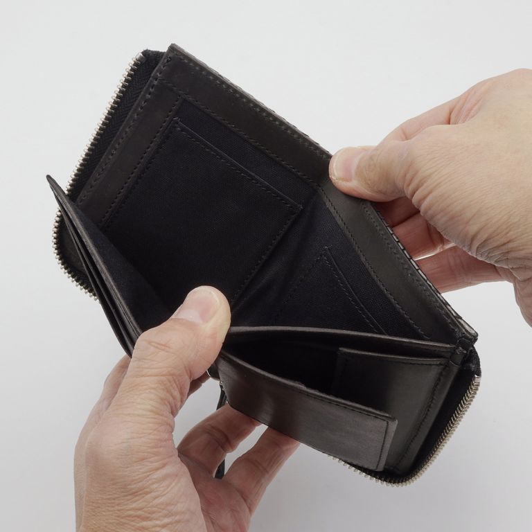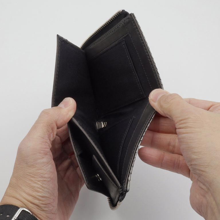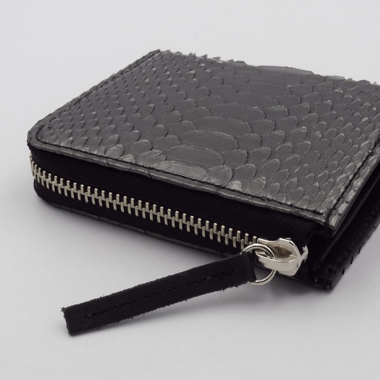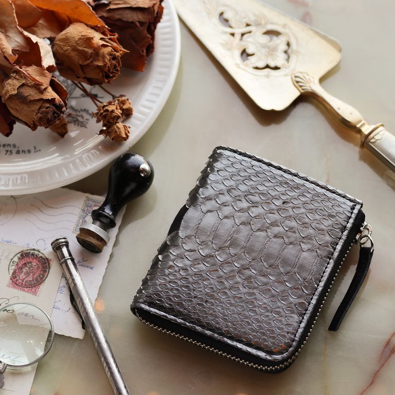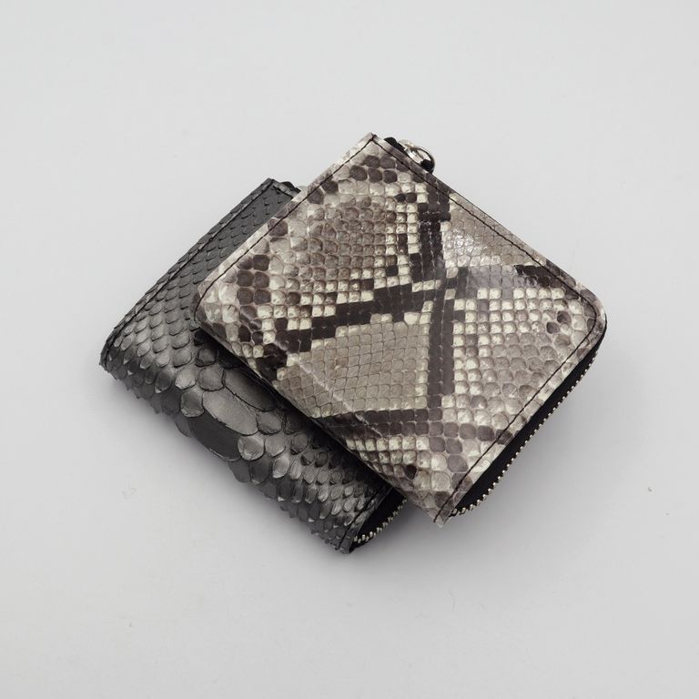 新入荷 NELD HEBI」Lファスナーコンパクト財布 ブラック ¥17,600 税込 160 ポイント還元 発送目安日:1–2営業日 この商品は 送料無料 でお届けします 注文 サイズ(採寸)情報 質問する お気に入り お電話でもご注文いただけます!お電話の際は 商品番号:16918 をお知らせください。 電話をかける 076-245-0067 縦 横 厚み 重量 108 93 25 90 単位:mm(重量:グラム) ※サイズ・重量は実測にて計測していますが、多少の誤差がある場合があります。 商品説明 大人の手元に、静かな色気。ダイヤ型の斑紋が端正に並ぶダイヤモンドパイソン。 繊細なテクスチャと上品な艶が、大人の手元に静かな色気を添えるシリーズです。すっきりとしたフォルムのLファスナー仕様。ラウンドファスナーのように三方を囲うタイプとは異なり、二方のみで開閉できるため、開いた瞬間に中身へスムーズにアクセスできます。 内部には視認性の高いボックスタイプの小銭入れを配置。一般的なポケットの他に、本モデルならではの特徴としてお札収納部にカードポケットを2つ備え、厚みのあるプラスチックカードが10~12枚程度入り、コンパクトながらも十分な収納力を確保しています。選べる2色。それぞれ異なる魅力。ベージュはヘビの背中が中央にくる“フロントカット”。整然と並ぶ斑紋と、美しく光を受ける艶が魅力です。 ブラックは腹側の模様を活かした“バックカット”。立体的に重なるウロコが鈍く光り、よりワイルドな印象に。 どちらもエキゾチックレザーならではの存在感と色香を纏っています。※バックカットはウロコの先端がひだ状になっていますが、通常のご使用で剥がれることはございませんのでご安心ください。商品仕様:小銭入れ×1、お札サイズポケット×1、カードポケット×7『HEBI/ヘビ』 表面から裏面にかけて継ぎ目の無い一枚革を贅沢に使用。内装には牛革をコンビネーションカラーで合わせ、一部に同色のコットンを用いています。 NELDを代表する3型に採用され、国内の職人が一つひとつ丁寧に仕立てています。※お手入れについて ヘビ革は栄養剤などの薬剤が浸透しやすい性質を持つため、使用量の加減が難しい素材です。日常のお手入れは、柔らかい布でウロコの流れに沿って優しく拭き上げてください。ご自身の手でウロコの流れに沿って均等に撫でることも、保革に繋がると言われています。革は湿気や水を嫌います。濡れた場合は乾いた柔らかい布で押すようにして速やかに水分を取り除き、通気性の良い状態で保管してください。 また、水濡れ(雨・汗など)や日焼けによる色落ち・退色は避けられません。夏季や雨天時のご使用、淡色の衣類と合わせる際は十分ご注意ください。 ギフトラッピングについて 大切な方への贈り物、気持ちを込めてラッピングいたします。大事な贈り物。ギフトボックスやラッピングペーパー、ヴィンテージの切手やマッチラベルを使って可愛くお包みします。当店でお取り扱いしております商品には商品ページで特に説明しているもの以外には専用の箱類は付属しません。 ギフトラッピングご希望のお客様にはお店でご用意できる資材を駆使してお相手の方に喜んでいただけますよう、心を込めてお包みさせていただきます。尚、ラッピングの体裁については当店にお任せください。ご用意は一般的なギフト用ラッピングになり、「のし」などの特別なご要望については対応しておりませんのでご了承ください。【ラッピングサービス有料化のお知らせ】これまで無料でご提供していたラッピングサービスですが、誠に勝手ながら有料(220円)とさせていただくことになりました。お客様にはご負担をおかけいたしますが、引き続き心を込めて対応いたしますので、ご理解のほどよろしくお願い申し上げます。 NELD(ネルド) ABOUT NELD「NELD(ネルド)」は、東京浅草橋を拠点に、地に足をつけて色褪せることのないモノ作りを目指しています。 高品質なヨーロッパ中心のレザーを最大限生かし、成熟した個人のカジュアルスタイルに合う性差のないプロダクトを展開します。 ブランド名の由来『NELD』は、珈琲を淹れるための「NELDRIP」(ネルドリップ)からの由来です。 「NELDRIP」とは、現在珈琲の淹れ方の主流であるペーパーフィルターでのドリップに対し、ネル(布)をフィルターにしドリップする方法です。 18世紀にフランスで風味豊かな珈琲を淹れるために創案され、200年以上経った今でも手間を惜しまず丁寧に淹れるこの「NELDRIP」式は、最高の抽出方法だとも言われています。 私たちも、多様なライフスタイルと情報が氾濫する現代において、地に足をつけて色褪せることのないモノ作りを目指したいという思いを込めて『NELD』というブランド名にしました。 そのために、特に素材を最も重要な要素の一つであると考えています。道具としての耐久性や軽さは勿論の事、長くご愛用いただけるように変化が楽しめる質の良い素材を日本だけでなくヨーロッパにも目を向け、自信をもってお薦めできる