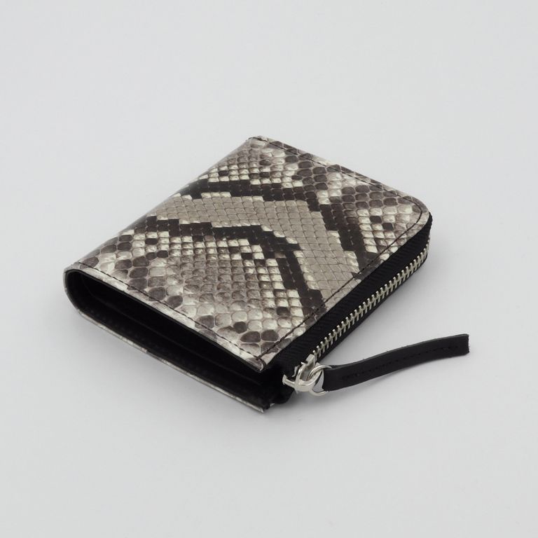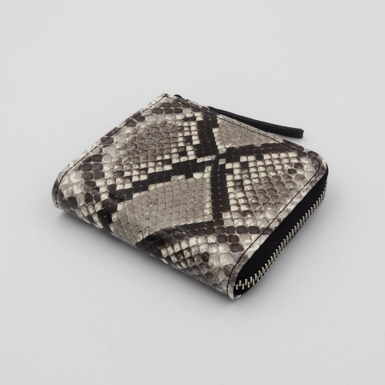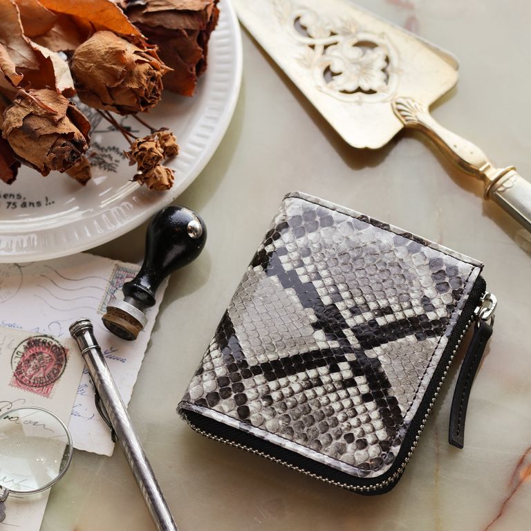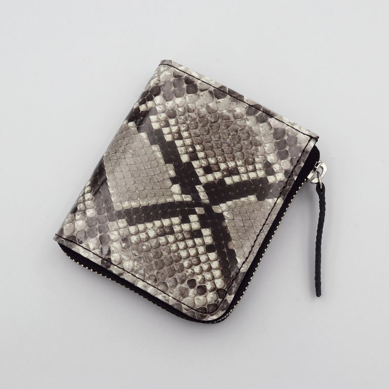 新入荷 NELD HEBI」Lファスナーコンパクト財布 ベージュ ¥17,600 税込 160 ポイント還元 発送目安日:1–2営業日 この商品は 送料無料 でお届けします 注文 サイズ(採寸)情報 質問する お気に入り お電話でもご注文いただけます!お電話の際は 商品番号:16919 をお知らせください。 電話をかける 076-245-0067 縦 横 厚み 重量 108 93 25 90 単位:mm(重量:グラム) ※サイズ・重量は実測にて計測していますが、多少の誤差がある場合があります。 商品説明 大人の手元に、静かな色気。ダイヤ型の斑紋が端正に並ぶダイヤモンドパイソン。 繊細なテクスチャと上品な艶が、大人の手元に静かな色気を添えるシリーズです。すっきりとしたフォルムのLファスナー仕様。ラウンドファスナーのように三方を囲うタイプとは異なり、二方のみで開閉できるため、開いた瞬間に中身へスムーズにアクセスできます。 内部には視認性の高いボックスタイプの小銭入れを配置。一般的なポケットの他に、本モデルならではの特徴としてお札収納部にカードポケットを2つ備え、厚みのあるプラスチックカードが10~12枚程度入り、コンパクトながらも十分な収納力を確保しています。選べる2色。それぞれ異なる魅力。ベージュはヘビの背中が中央にくる“フロントカット”。整然と並ぶ斑紋と、美しく光を受ける艶が魅力です。 ブラックは腹側の模様を活かした“バックカット”。立体的に重なるウロコが鈍く光り、よりワイルドな印象に。 どちらもエキゾチックレザーならではの存在感と色香を纏っています。※バックカットはウロコの先端がひだ状になっていますが、通常のご使用で剥がれることはございませんのでご安心ください。商品仕様:小銭入れ×1、お札サイズポケット×1、カードポケット×7『HEBI/ヘビ』 表面から裏面にかけて継ぎ目の無い一枚革を贅沢に使用。内装には牛革をコンビネーションカラーで合わせ、一部に同色のコットンを用いています。 NELDを代表する3型に採用され、国内の職人が一つひとつ丁寧に仕立てています。※お手入れについて ヘビ革は栄養剤などの薬剤が浸透しやすい性質を持つため、使用量の加減が難しい素材です。日常のお手入れは、柔らかい布でウロコの流れに沿って優しく拭き上げてください。ご自身の手でウロコの流れに沿って均等に撫でることも、保革に繋がると言われています。革は湿気や水を嫌います。濡れた場合は乾いた柔らかい布で押すようにして速やかに水分を取り除き、通気性の良い状態で保管してください。 また、水濡れ(雨・汗など)や日焼けによる色落ち・退色は避けられません。夏季や雨天時のご使用、淡色の衣類と合わせる際は十分ご注意ください。 ギフトラッピングについて 大切な方への贈り物、気持ちを込めてラッピングいたします。大事な贈り物。ギフトボックスやラッピングペーパー、ヴィンテージの切手やマッチラベルを使って可愛くお包みします。当店でお取り扱いしております商品には商品ページで特に説明しているもの以外には専用の箱類は付属しません。 ギフトラッピングご希望のお客様にはお店でご用意できる資材を駆使してお相手の方に喜んでいただけますよう、心を込めてお包みさせていただきます。尚、ラッピングの体裁については当店にお任せください。ご用意は一般的なギフト用ラッピングになり、「のし」などの特別なご要望については対応しておりませんのでご了承ください。【ラッピングサービス有料化のお知らせ】これまで無料でご提供していたラッピングサービスですが、誠に勝手ながら有料(220円)とさせていただくことになりました。お客様にはご負担をおかけいたしますが、引き続き心を込めて対応いたしますので、ご理解のほどよろしくお願い申し上げます。 NELD(ネルド) ABOUT NELD「NELD(ネルド)」は、東京浅草橋を拠点に、地に足をつけて色褪せることのないモノ作りを目指しています。 高品質なヨーロッパ中心のレザーを最大限生かし、成熟した個人のカジュアルスタイルに合う性差のないプロダクトを展開します。 ブランド名の由来『NELD』は、珈琲を淹れるための「NELDRIP」(ネルドリップ)からの由来です。 「NELDRIP」とは、現在珈琲の淹れ方の主流であるペーパーフィルターでのドリップに対し、ネル(布)をフィルターにしドリップする方法です。 18世紀にフランスで風味豊かな珈琲を淹れるために創案され、200年以上経った今でも手間を惜しまず丁寧に淹れるこの「NELDRIP」式は、最高の抽出方法だとも言われています。 私たちも、多様なライフスタイルと情報が氾濫する現代において、地に足をつけて色褪せることのないモノ作りを目指したいという思いを込めて『NELD』というブランド名にしました。 そのために、特に素材を最も重要な要素の一つであると考えています。道具としての耐久性や軽さは勿論の事、長くご愛用いただけるように変化が楽しめる質の良い素材を日本だけでなくヨーロッパにも目を向け、自信をもってお薦めできる