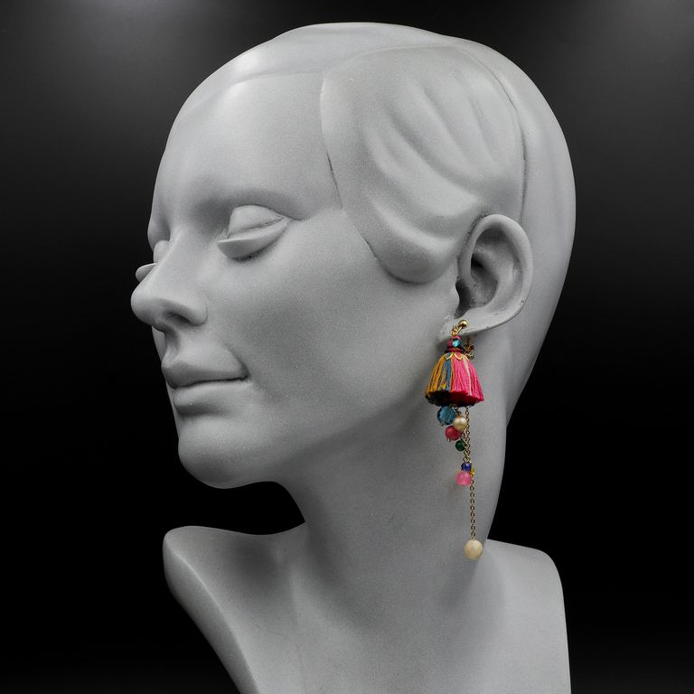 いつも音楽を聴きながら古着のフレアスカートを靡かせて絵を描く彼女を見ているときに、コロコロタッセルのフォルムが浮かびました。