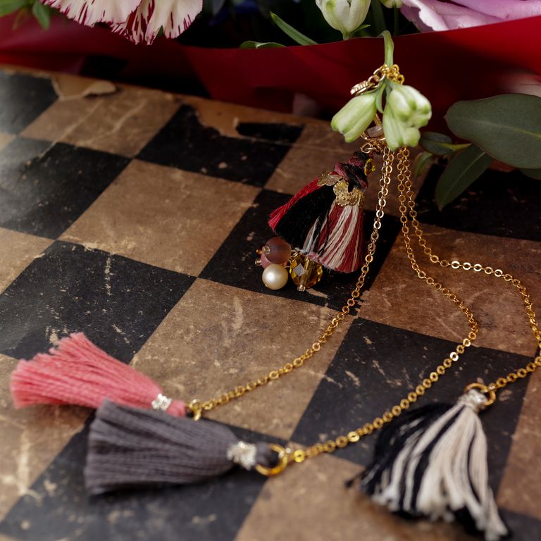 いつも音楽を聴きながら古着のフレアスカートを靡かせて絵を描く彼女を見ているときに、コロコロタッセルのフォルムが浮かびました。