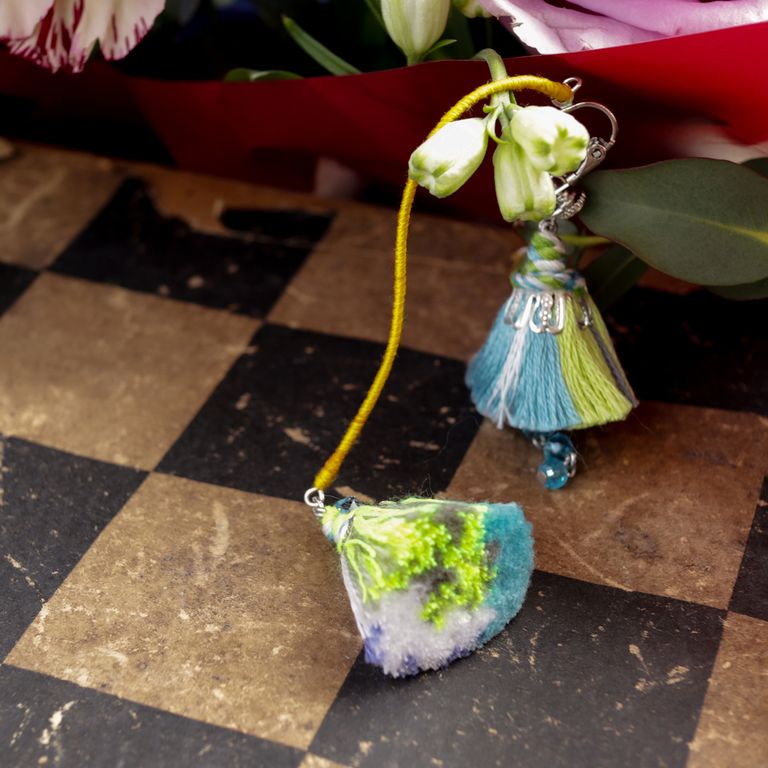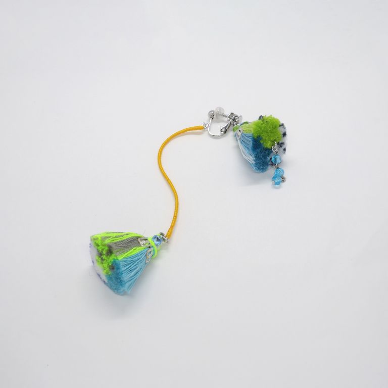 いつも音楽を聴きながら古着のフレアスカートを靡かせて絵を描く彼女を見ているときに、コロコロタッセルのフォルムが浮かびました。
