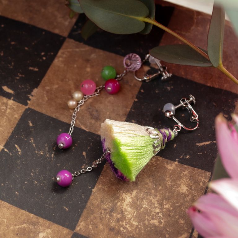 ふわっとしたフォルムのタッセルは、さらっとしたタイプに比べてボリュームがあり、サイズ感以上に耳元を華やかに飾ってくれます。