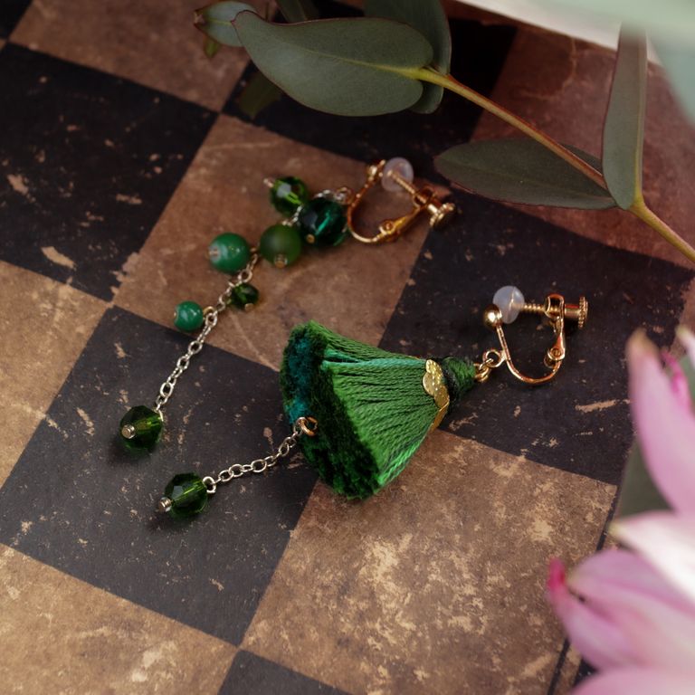 ふわっとしたフォルムのタッセルは、さらっとしたタイプに比べてボリュームがあり、サイズ感以上に耳元を華やかに飾ってくれます。