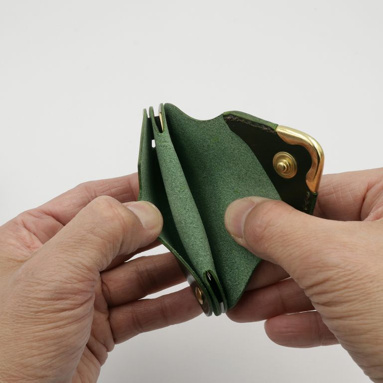 元々ベルト製造を専門としていたメーカーらしく、コバ(革のヘリ)を本磨き※で美しく仕上げています。コンパクトなサイズながら、日本の職人技で細部まで丁寧に仕立てられています。革の重厚感も素晴らしく、革好きも納得の逸品です。