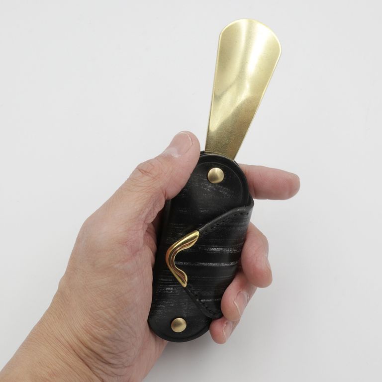 シューホーンは底部に収納されているので、フラップを開けずに取り出せます。