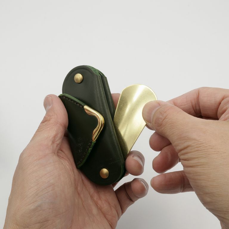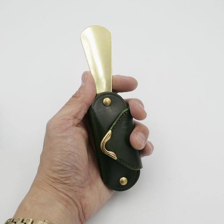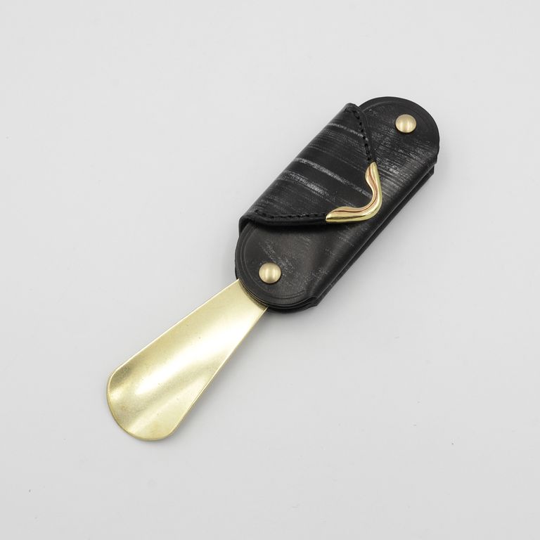 シューホーンは底部に収納されているので、フラップを開けずに取り出せます。