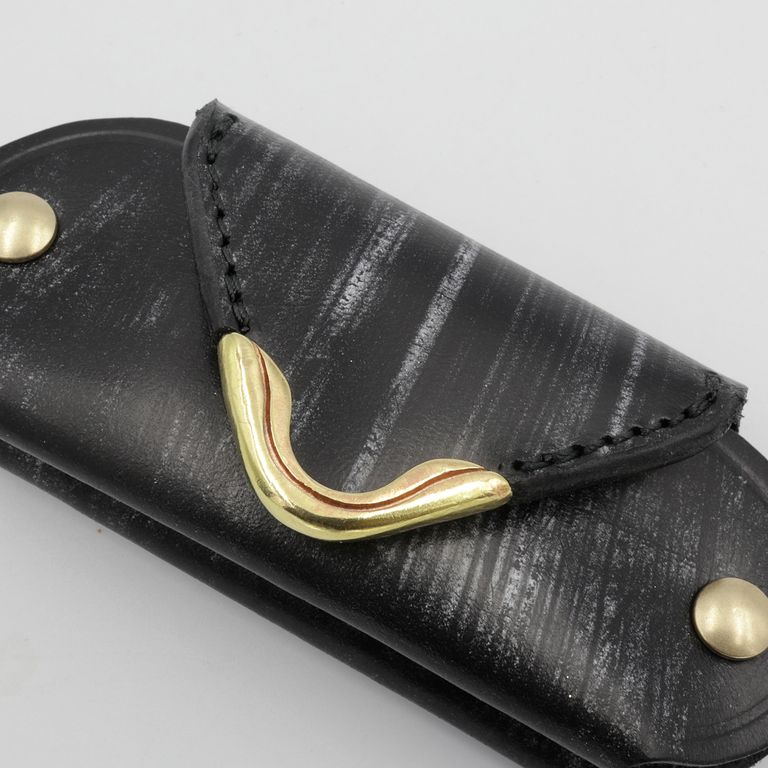 アイコニックな「隅金」を中央に配したフェイスが特徴的な池之端銀革店「Cramp」のスライド式キーケース。馬具に使われる堅牢なイギリス産のブライドルレザーを使用し、長く使うことでゆっくりと味わいが増していきます。