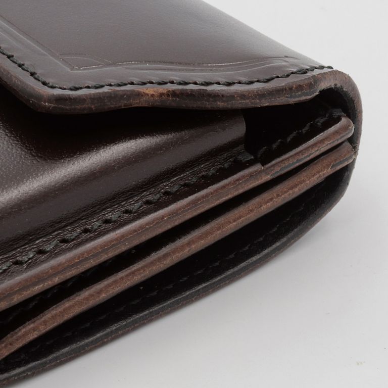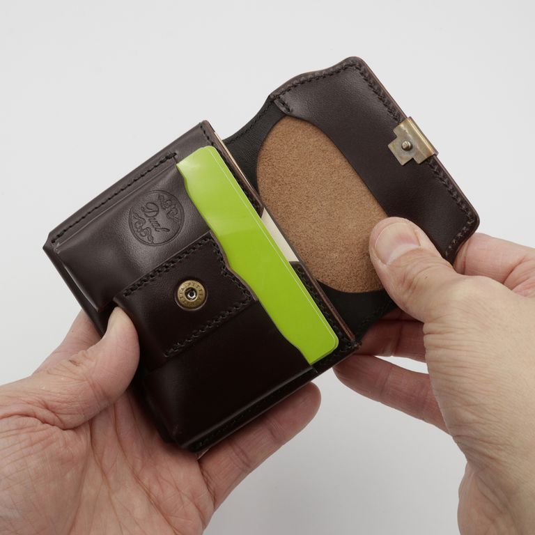 新入荷 Dual 【Dual】ギャルソンコンパクトウォレット サドルプルアップ チョコ ¥25,300 税込 230 ポイント還元 発送目安日:1–2営業日 この商品は 送料無料 でお届けします 注文 サイズ(採寸)情報 質問する お気に入り お電話でもご注文いただけます!お電話の際は 商品番号:17086 をお知らせください。 電話をかける 076-245-0067 縦 横 厚さ 重量 85 103 27 75 単位:mm(重量:グラム) ※サイズ・重量は実測にて計測していますが、多少の誤差がある場合があります。 商品説明 カードも小銭も妥協しない30mmの新世界。アイコニックなコバホックやフラップの型押しなど、クラシカルな意匠が特徴的な、池之端銀革店「Dual」のコンパクト財布。厚みとコシのあるベルギー産のサドルプルアップレザーを使用し、使い込むほどに味わいが増していきます。プラスチックカードを8~10枚程度収納しながら、厚みを約30mmに抑えられるスリムさが一番の魅力です。フラップを開けると、カードポケットと背面側のコインポケットにダイレクトにアクセスできます。さらにホックを開けると、お札収納部が現れます。カードポケットには、池之端オリジナルの「PUSH」ギミックを搭載。底部を押し出すことで、カードをスムーズに探せます。コインポケットはギャルソンウォレット仕様で大きく開くため見やすく、さらに内部には鍵の収納にぴったりな浅めのポケットも備えています。お札収納部は、底部を縫わない仕立てで大きく開くため、お札の出し入れもスムーズです。カードとコインへのアクセスが特にしやすく、キャッシュレス派の方にもおすすめのコンパクト財布です。革好きも納得の職人技が光る逸品。元々ベルト製造を専門としていたメーカーらしく、コバ(革のヘリ)を本磨き※で美しく仕上げています。コンパクトなサイズながら、日本の職人技で細部まで丁寧に仕立てられています。革の重厚感も素晴らしく、革好きも納得の逸品です。サドルプルアップレザー:牛革を植物タンニンで鞣し、オイルをたっぷりと含ませた革です。堅牢で耐久性に優れており、使い込むほどに光沢が増し、豊かな風合いへと変化します。本磨き:革の断面をやすりなどで丁寧に整えた後、布海苔や磨き剤を塗り込み、柔らかい布などで何度も擦り付けて圧力をかけることで、文字通り「磨き上げる」作業のことです。手間暇はかかりますが、仕上がりが美しく、革の断面が割れにくいため、製品を長く美しい状態で保つことができます。 ギフトラッピングについて 大切な方への贈り物、気持ちを込めてラッピングいたします。大事な贈り物。ギフトボックスやラッピングペーパー、ヴィンテージの切手やマッチラベルを使って可愛くお包みします。当店でお取り扱いしております商品には商品ページで特に説明しているもの以外には専用の箱類は付属しません。 ギフトラッピングご希望のお客様にはお店でご用意できる資材を駆使してお相手の方に喜んでいただけますよう、心を込めてお包みさせていただきます。尚、ラッピングの体裁については当店にお任せください。ご用意は一般的なギフト用ラッピングになり、「のし」などの特別なご要望については対応しておりませんのでご了承ください。※送料が安くなるクリックポスト対応の商品でもラッピングの都合上、高さ30mmを超えてしまい、クリックポスト発送の適応外となる場合がございます。ご了承ください。【ラッピングサービス有料化のお知らせ】これまで無料でご提供していたラッピングサービスですが、誠に勝手ながら有料(220円)とさせていただくことになりました。お客様にはご負担をおかけいたしますが、引き続き心を込めて対応いたしますので、ご理解のほどよろしくお願い申し上げます。 詳細情報 カラー チョコ 素材 ベルギーサドルプルアップレザー ブランド Dual 品番 Dcr-1050-CH カテゴリ 財布・小物 > 財布 > 折り財布 財布・小物 > 財布 > コンパクト財布 性別 ユニセックス 返品 返品可能条件はこちら ラッピング 可能 発送目安日 1–2営業日 配送方法 ヤマト運輸(送料について) お支払い方法 本商品でご利用可能な決済方法は下記となります。各お支払い方法についての詳細はショッピングガイドをご覧ください クレジットカード払い セキュリティコードとはクレジットカード裏面のサイン欄上部に記載されている数字の一番右の3桁の数字です。アメリカン・エキスプレス・カード提携のクレジットカードの場合、セキュリティコードはクレジットカード表面に記載されている4桁の数字となります。 あと払い (ペイディ) 事前登録不要、クレジットカード登録不要。 メールアドレスと携帯電話番号だけで、今すぐ購入可能。 お支払いは翌月27日までに、コンビニ払い・銀行振込・口座振替で。 1か月に何度購入しても、お支払いは翌月まとめて1回でOK。 さらに、ペイディアプリから本人確認をすると、分割手数料無料*の3回あと払い**、ご利用可能額の確認、使い過ぎを防止する予算設定など